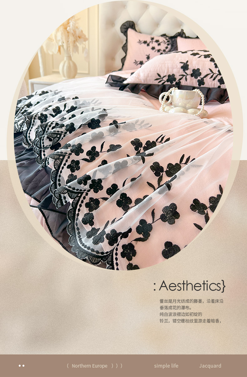 (总)恋尚 2025新款全棉纯棉蕾丝印花床笠裙四件套,芙微,花蝶语,花牺,蔓朵,浅栀,夏瑶,向朵,寻芳朵朵,荨花