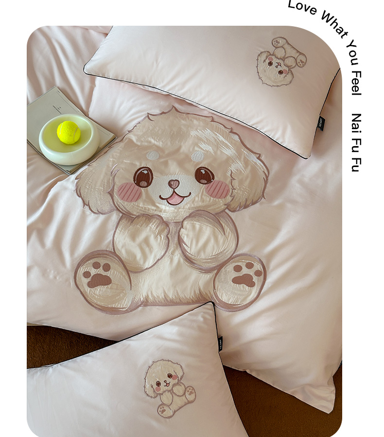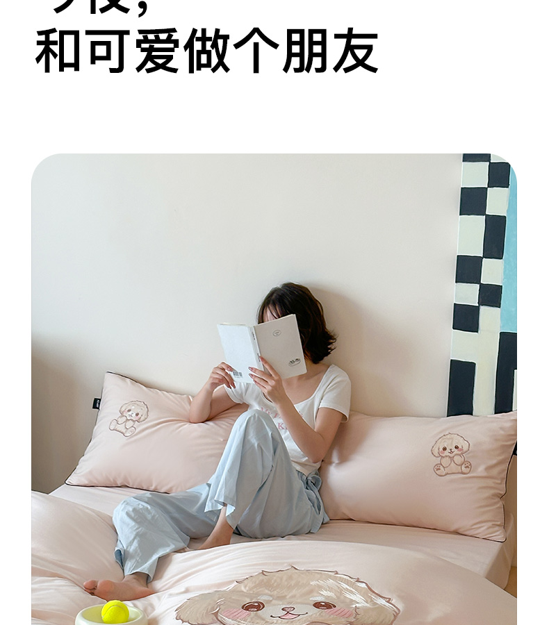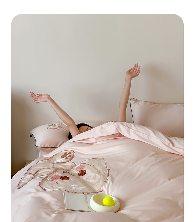 商品名称:卡姿家纺 2025秋冬60支长绒棉贴布绣四件套-萌趣多 萌趣多-粉