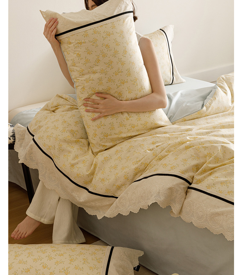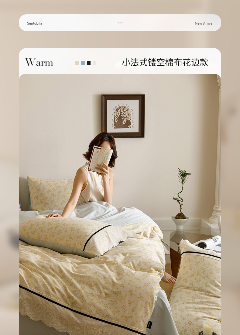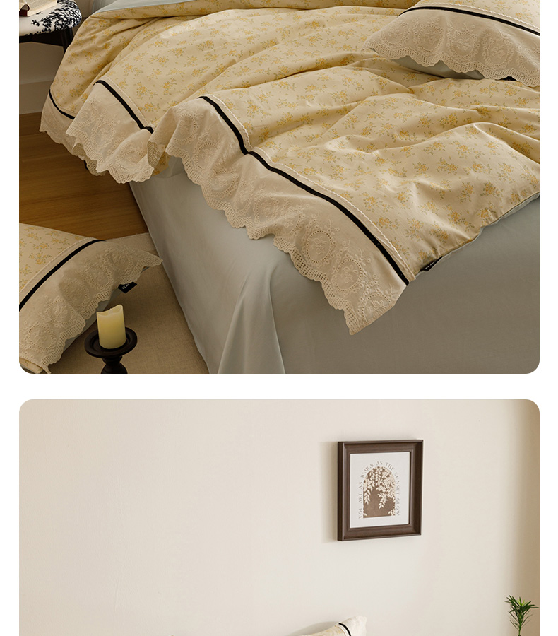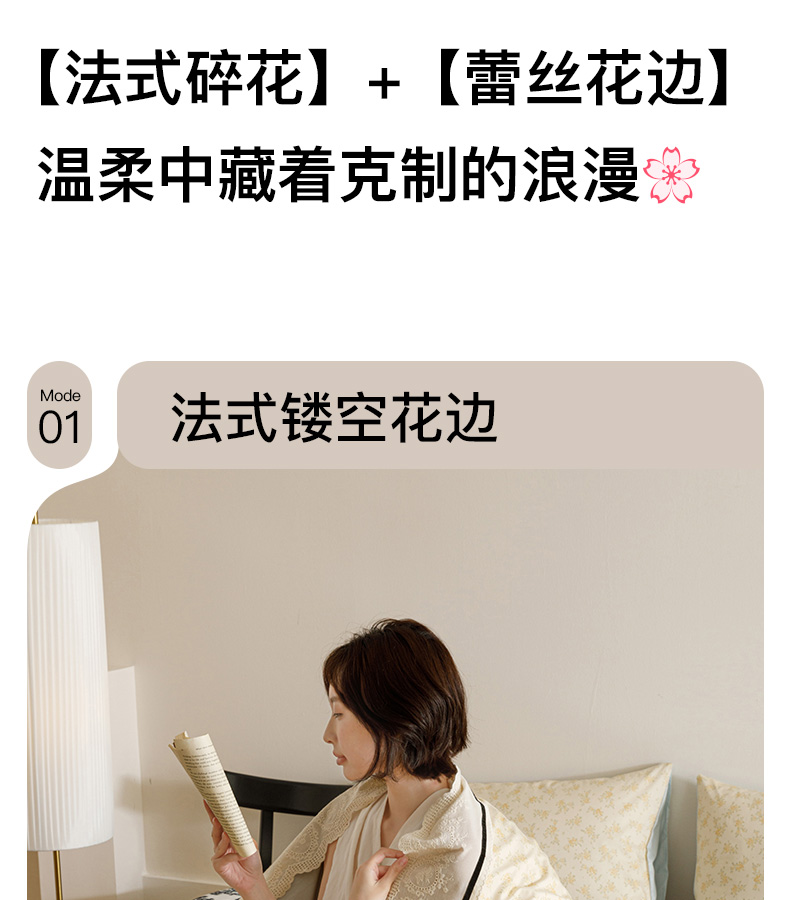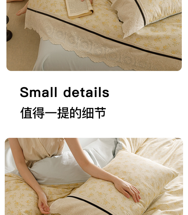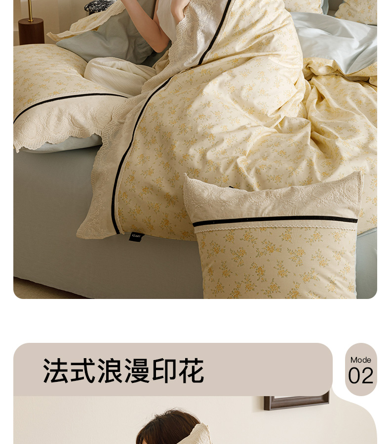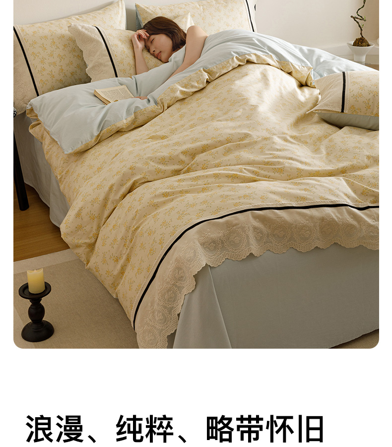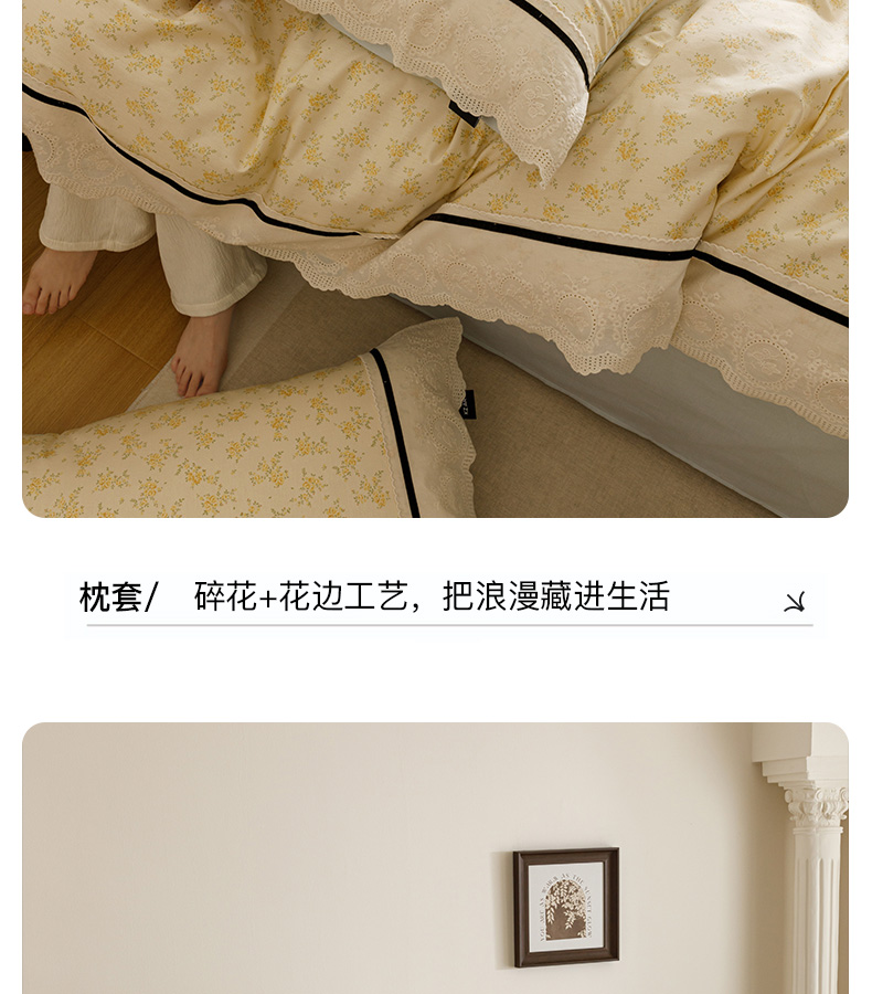 商品名称:卡姿家纺 2025新款小法式镂空棉布花边款四件套 幸福铃兰