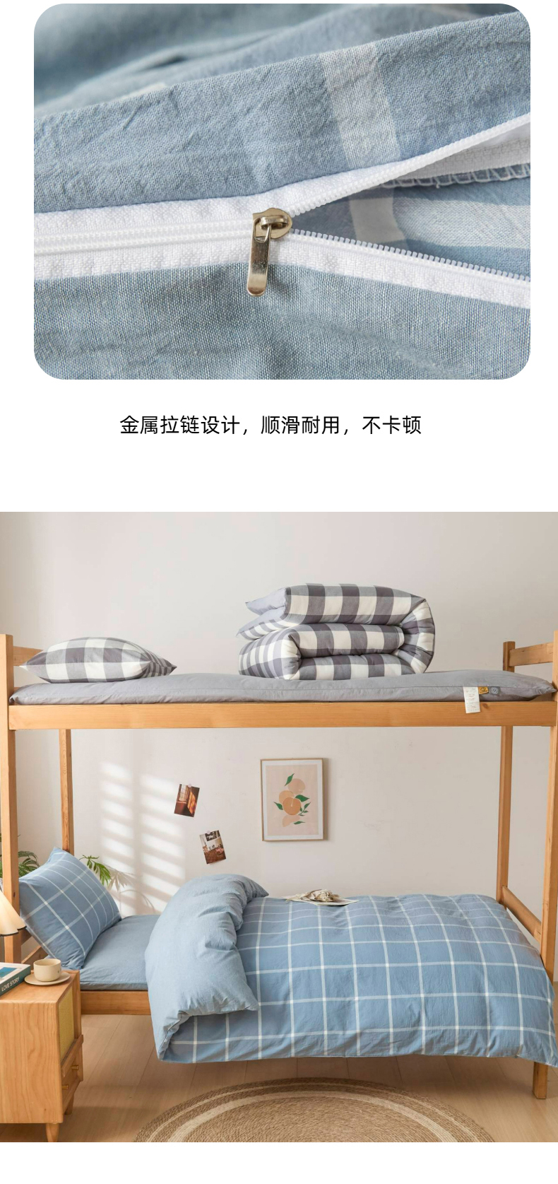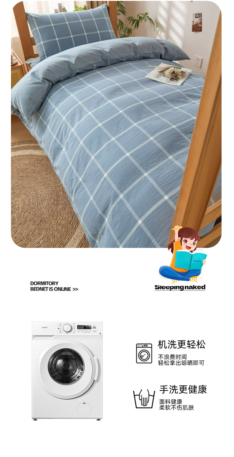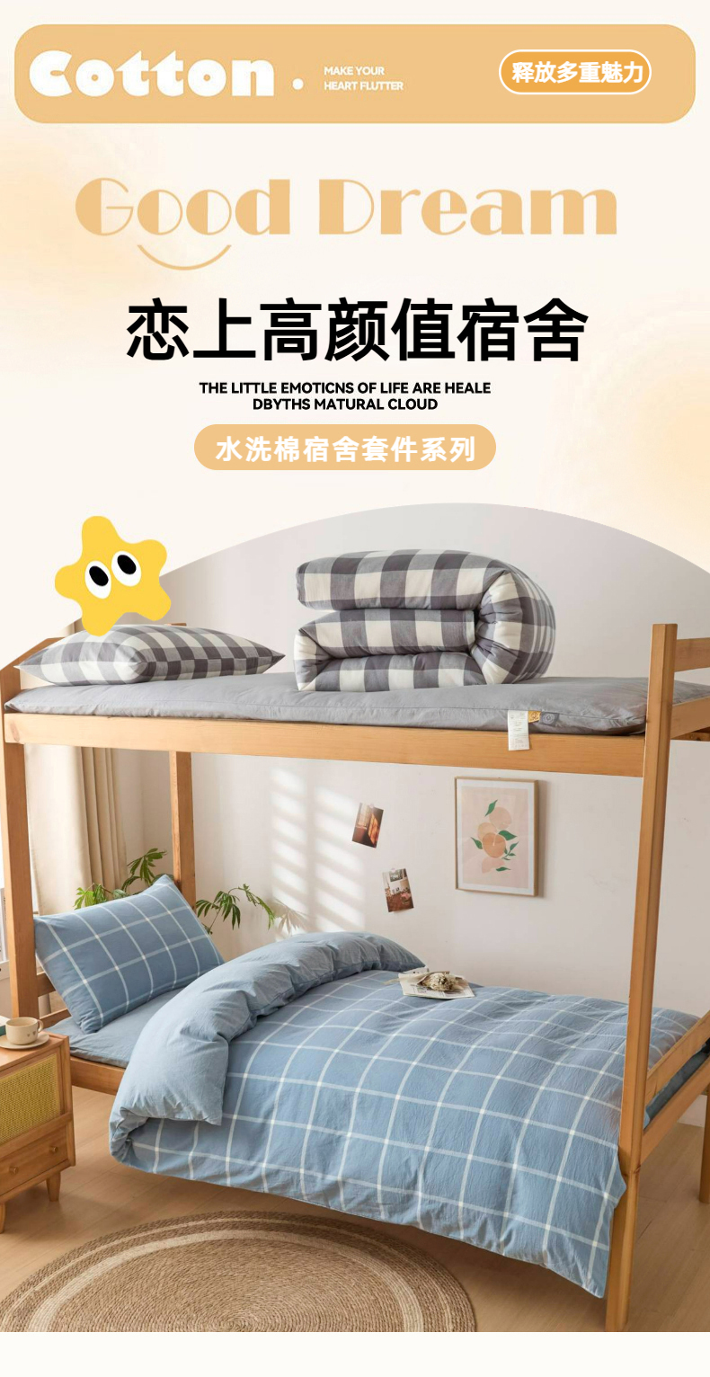 (总)爱屋及屋 2025新款水洗棉学生季大礼包学生宿舍六件套棉花被+棉花垫子+枕头+三件套一站式全套,海蓝大格,格韵蓝,光年灰,灰中格,简析粉,简析蓝,蓝咖大格,蓝小格,蓝中格,清新格,韵绿格,左岸蓝