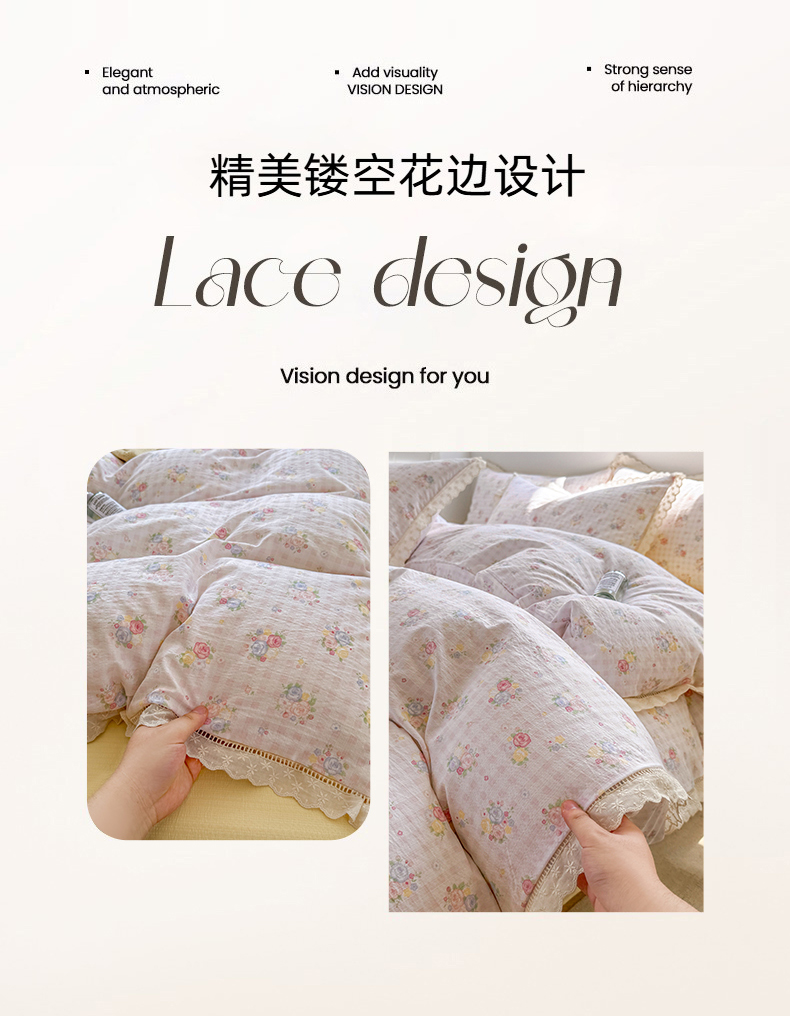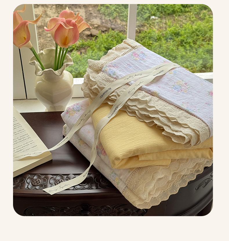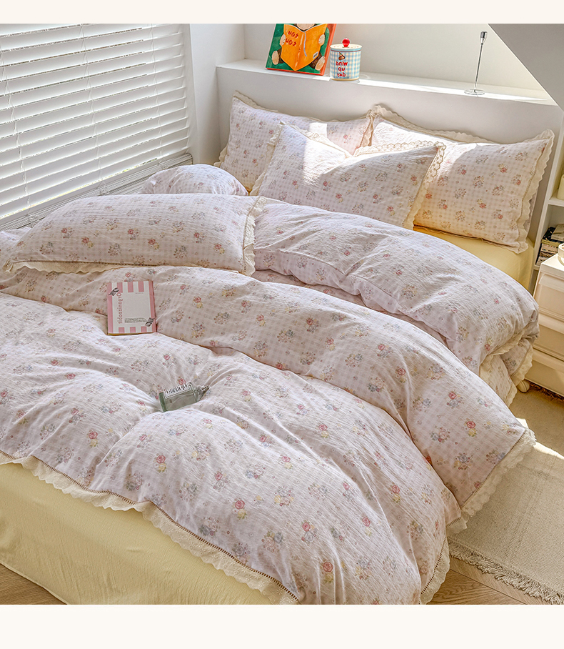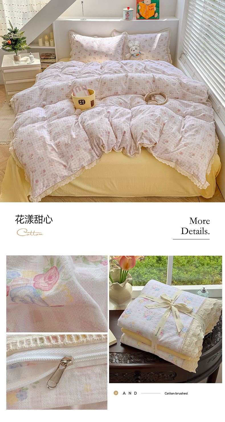 当前位置: 91家纺网 > 商品网购 > 床品套件 > 四件套 > 其它四件套 > 艾特你 2025新款云感双层纱镂空花边四件套 花边款-甜心花漾