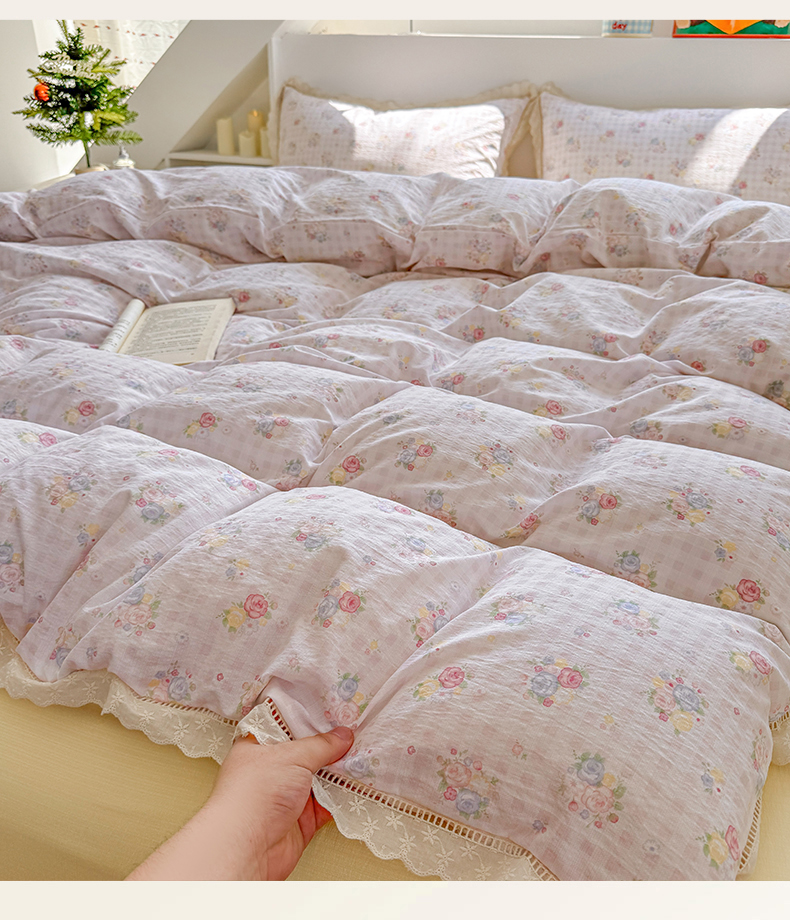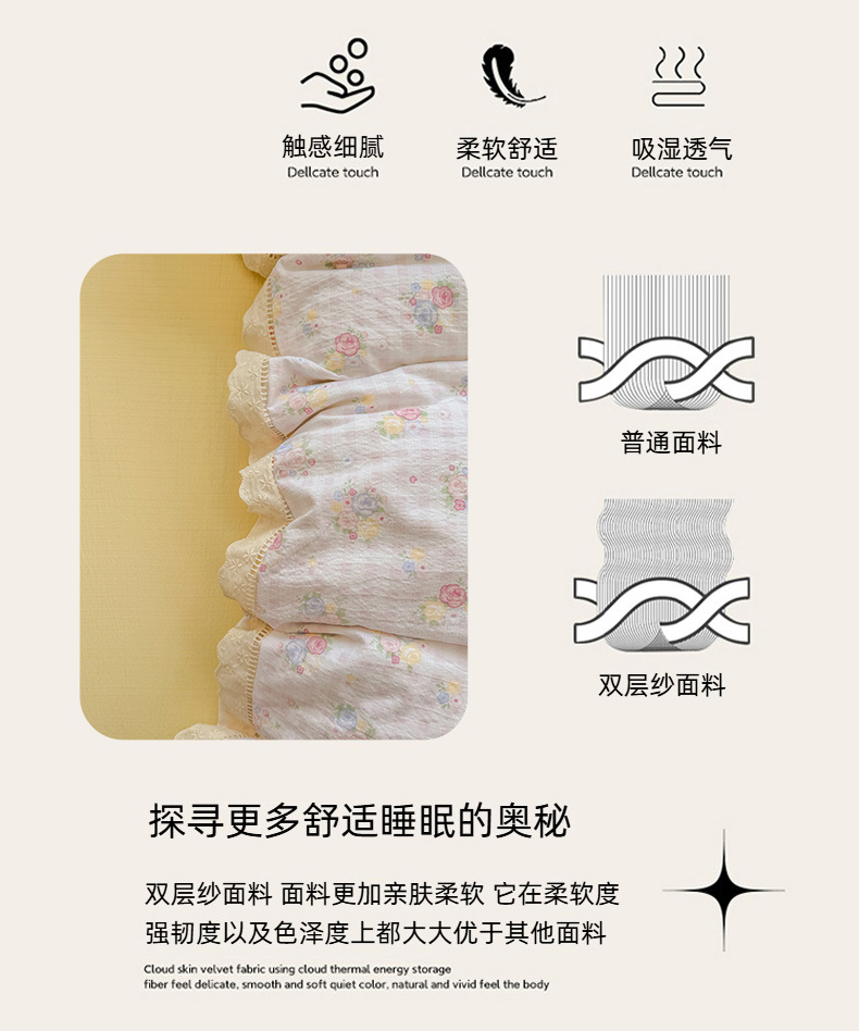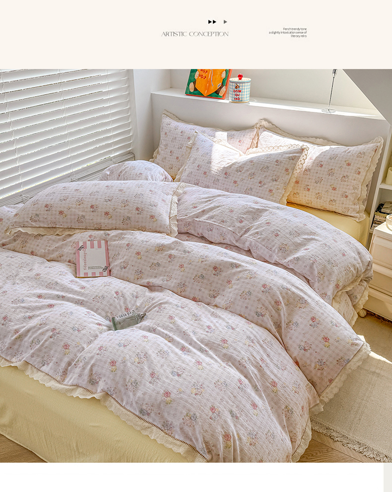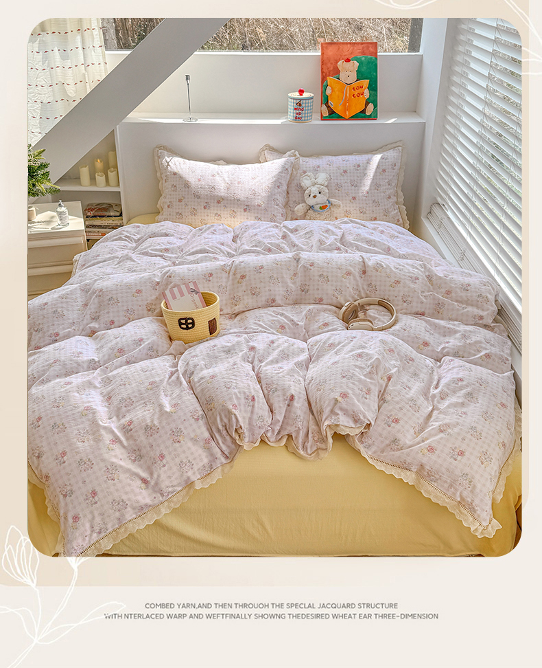 当前位置: 91家纺网 > 商品网购 > 床品套件 > 四件套 > 其它四件套 > 艾特你 2025新款云感双层纱镂空花边四件套 花边款-甜心花漾
