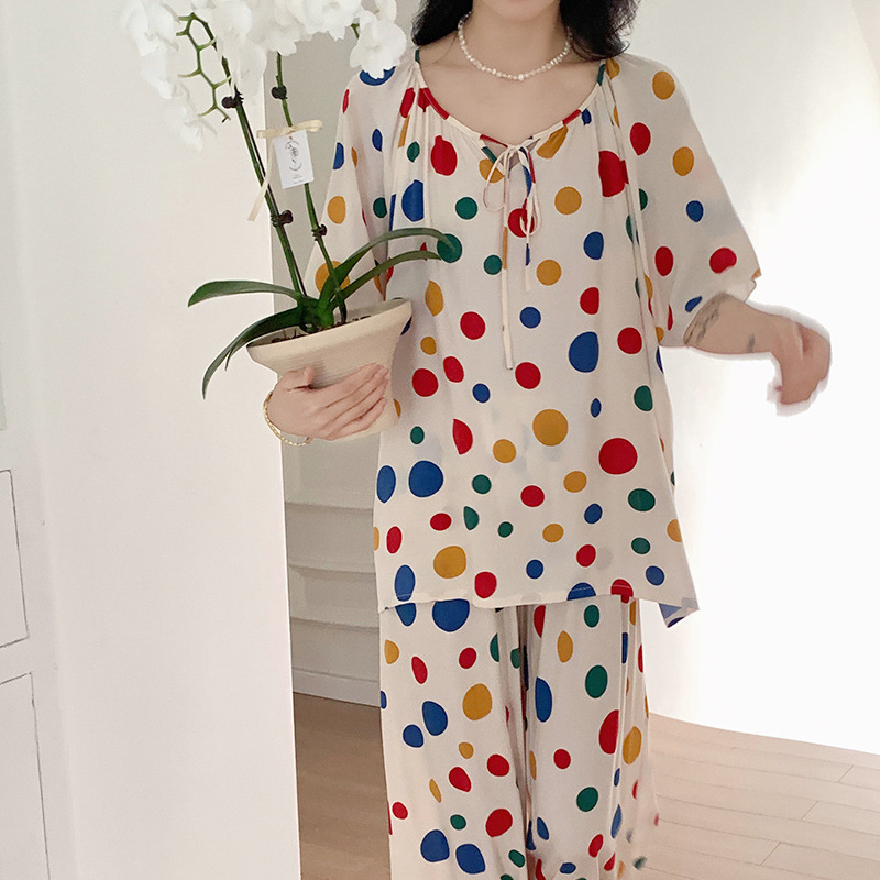 当前位置: 91家纺网 > 商品网购 > 居家日用 > 睡衣/家居服套装 > 妍景家居生活馆 2025新款绵绸短袖长裤款 秋叶黄