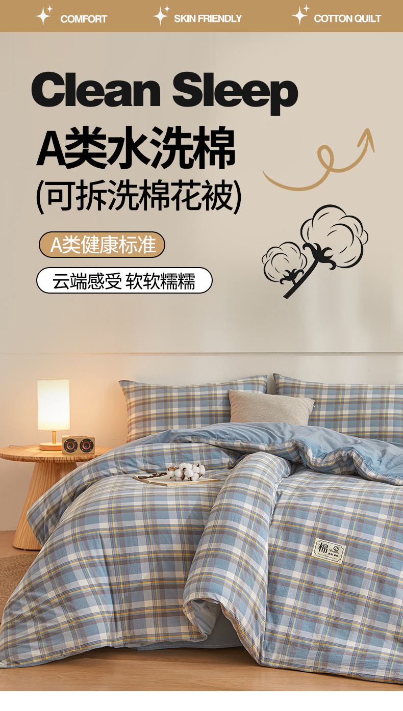 • 91家纺网 家纺一手货源 找家纺 晓时候 2025新款A类水洗棉可拆洗新疆棉花被冬被春秋被夏被四季被子被芯 简兮蓝