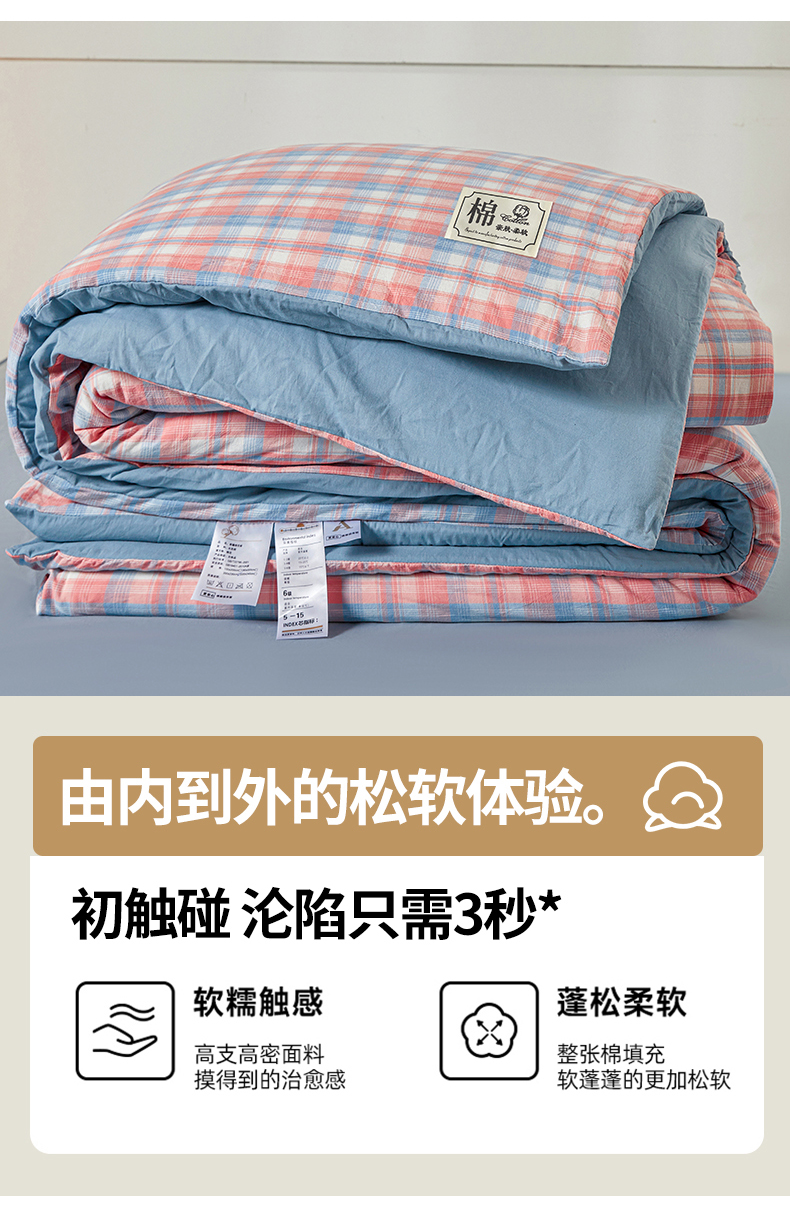 • 91家纺网 家纺一手货源 找家纺 晓时候 2025新款A类水洗棉可拆洗新疆棉花被冬被春秋被夏被四季被子被芯 云舒粉