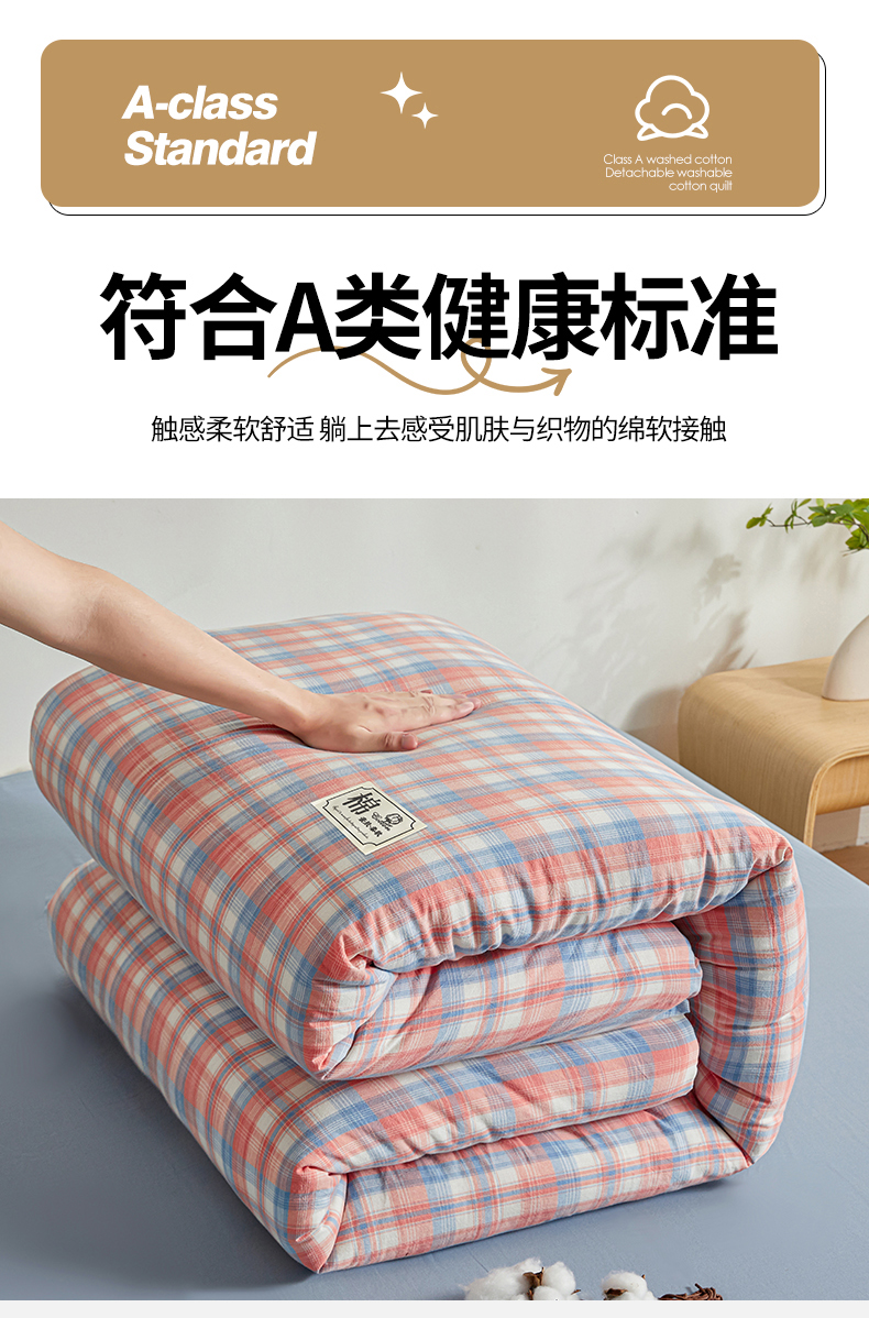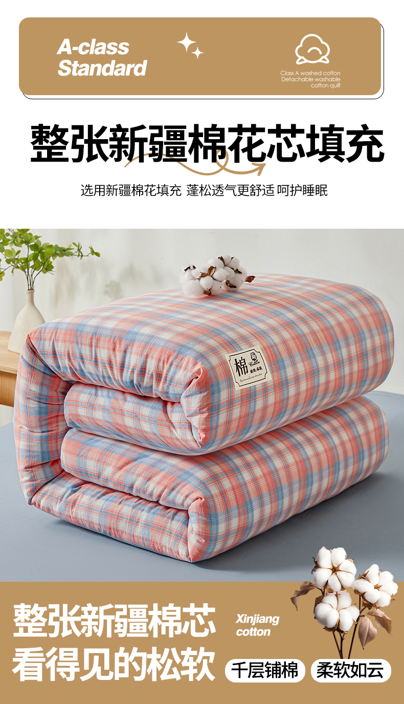 (总)晓时候 2025新款可拆洗新疆棉花床垫被褥子加厚冬被学生宿舍水洗棉床垫套-宿舍款,格韵-灰,格韵-粉,格韵-蓝,蜜粉大格,蜜粉小格,蜜桔格,青春格,森林绿,天蓝小格,烟灰大格