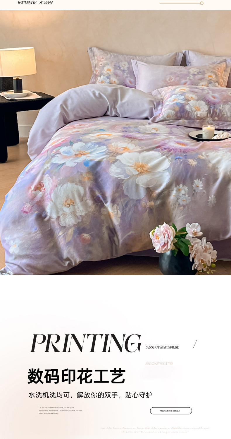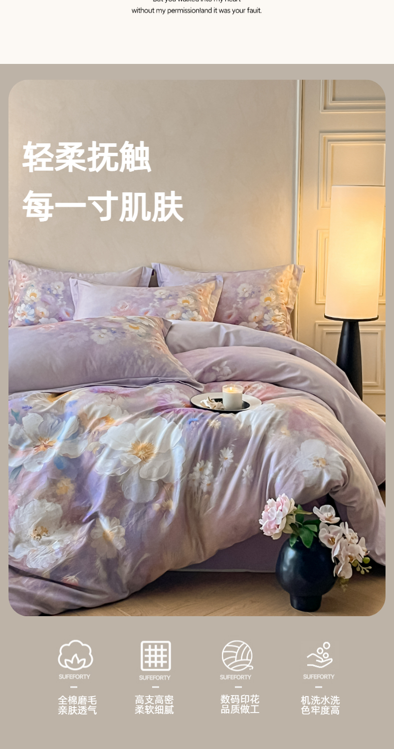 当前位置: 91家纺网 > 商品网购 > 床品套件 > 四件套 > 全棉普通四件套 > 禾时 2025新款全棉纯棉大版磨毛数码印花四件套(32x21磨毛) 洛神旋舞(紫)
