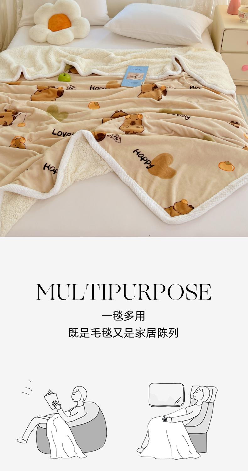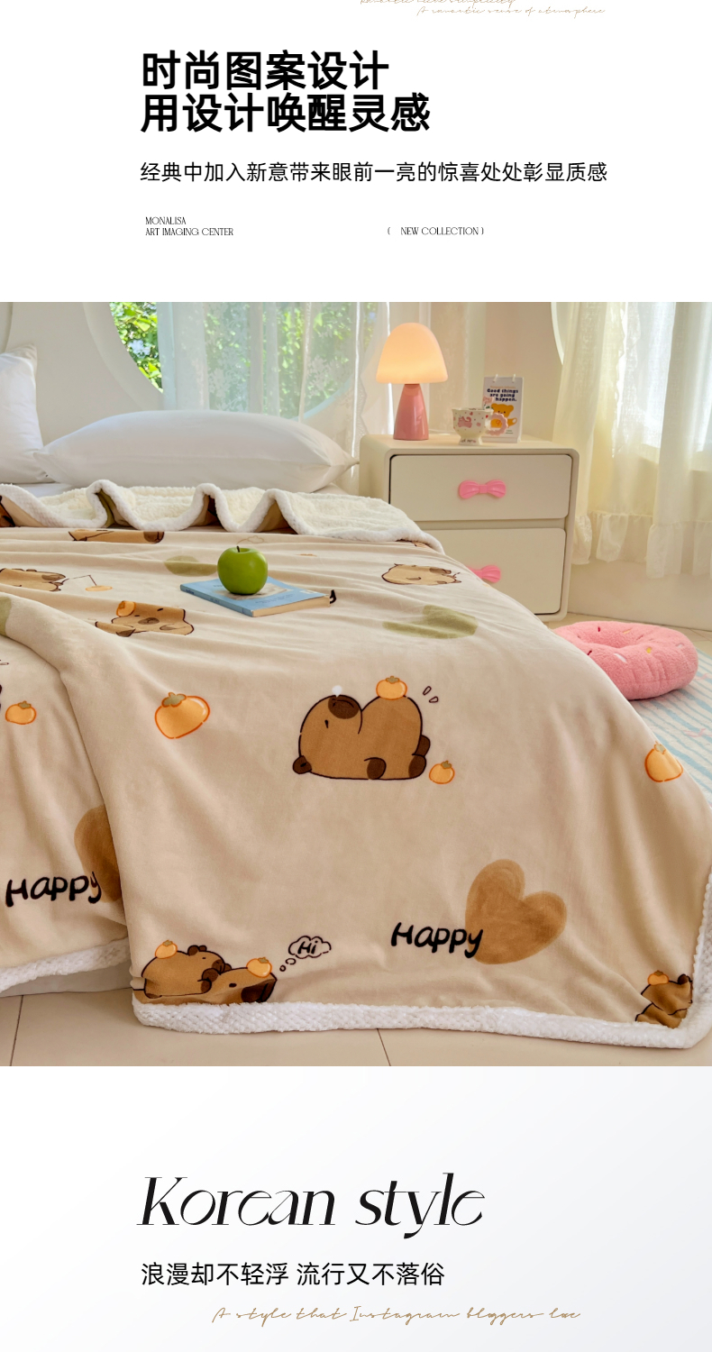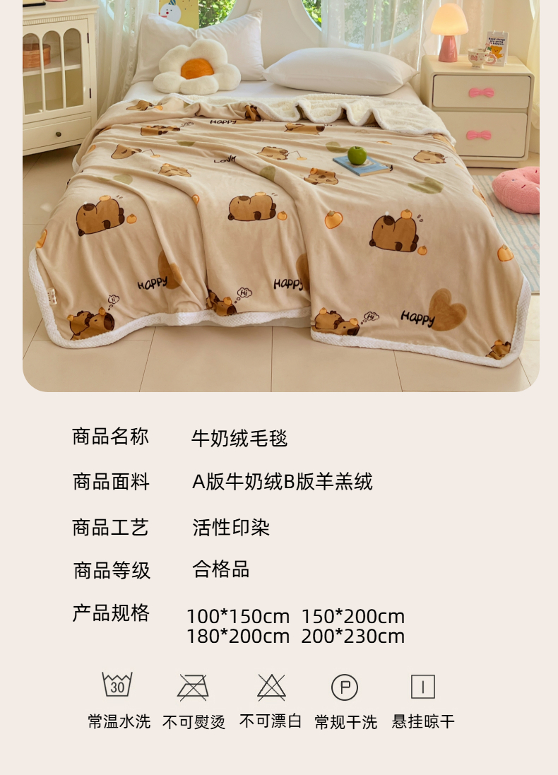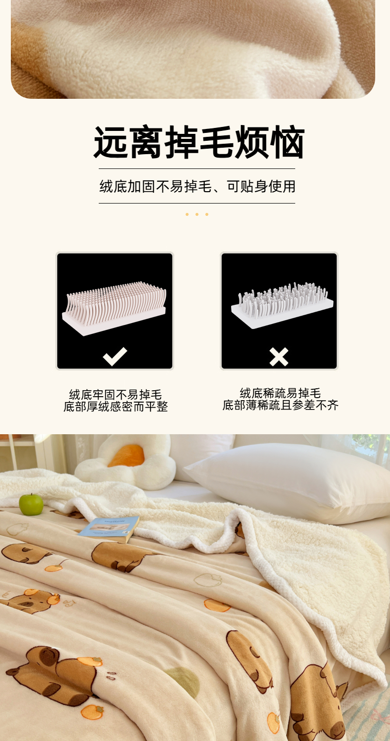 商品名称:锦润家纺 2025年新款牛奶绒羊羔绒AB版包边毛毯卡皮巴拉