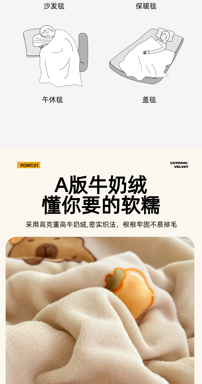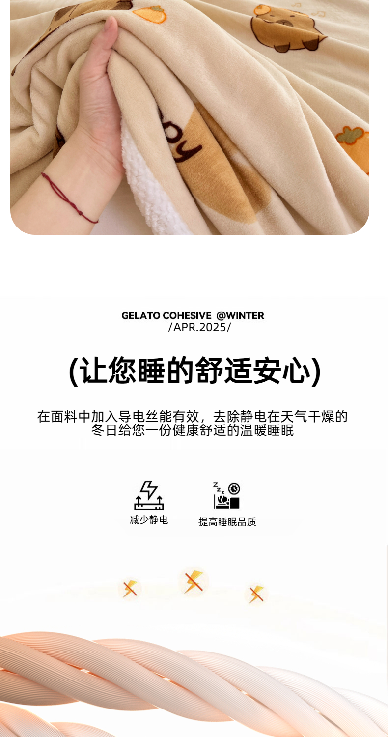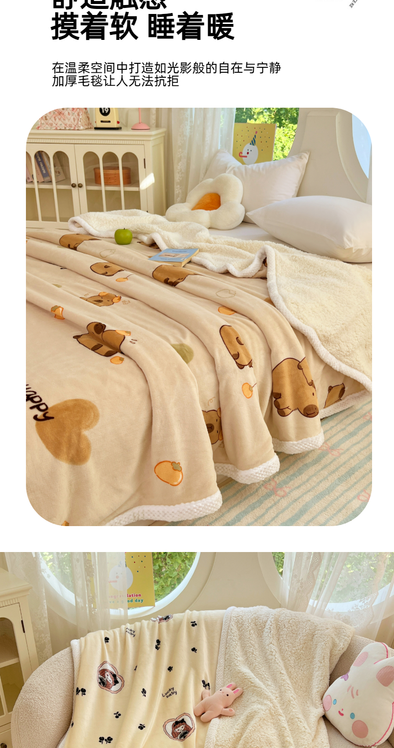 商品名称:锦润家纺 2025年新款牛奶绒羊羔绒AB版包边毛毯卡皮巴拉