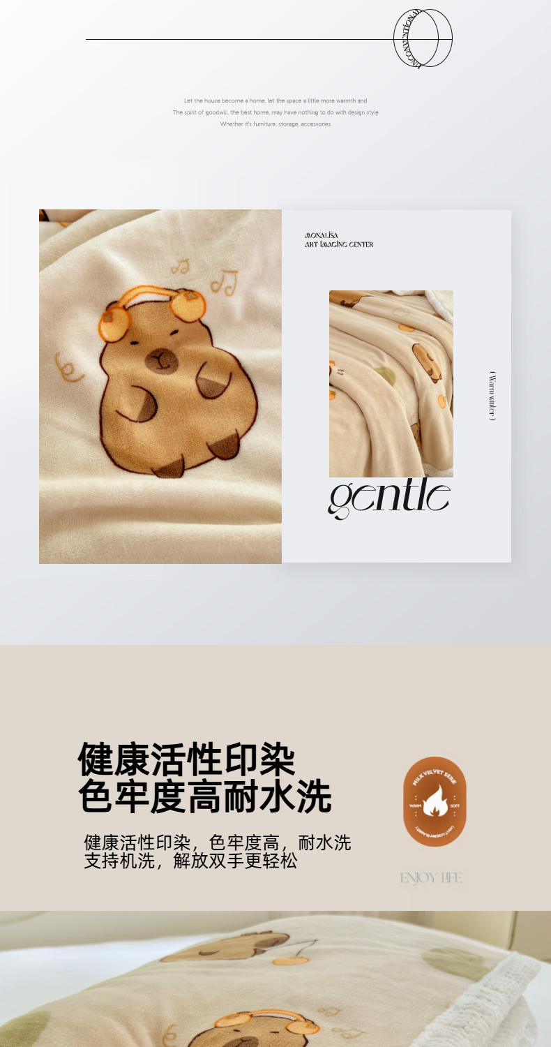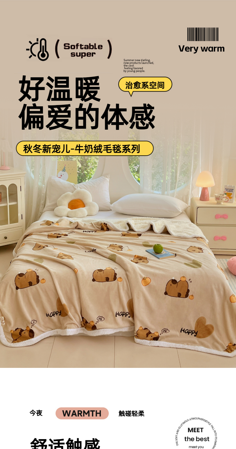 锦润家纺 2025年新款牛奶绒羊羔绒AB版包边毛毯卡皮巴拉
