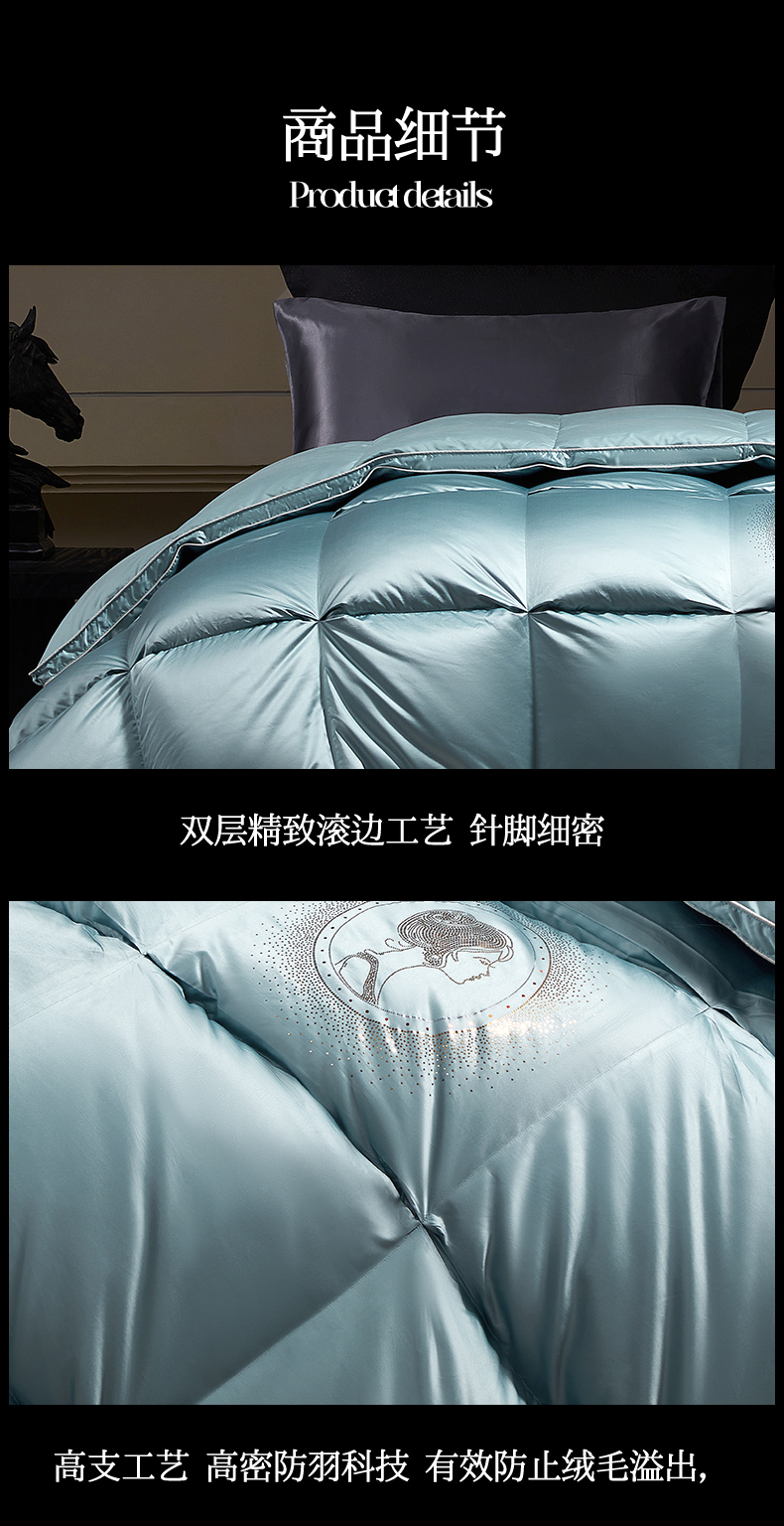 • 91家纺网 家纺一手货源 找家纺 (总)织梦人羽绒工厂店 2025新款高端100支长绒棉德国进口软银丝全棉95鹅绒羽绒被,凤翎-黑金