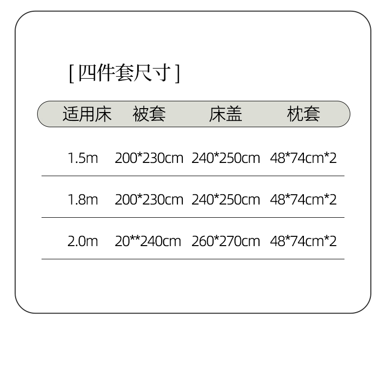 200*230cm单被套 | ¥50.00 |