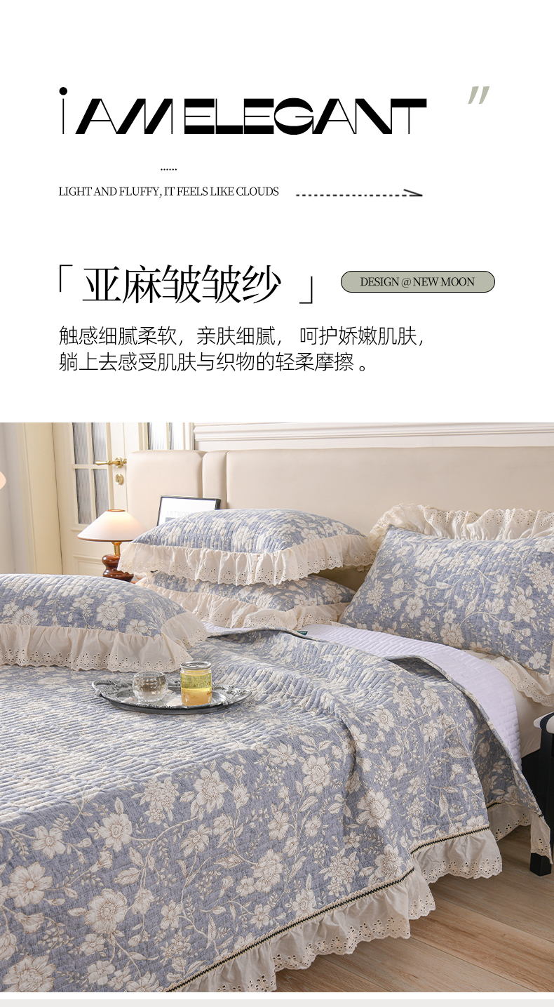 当前位置: 91家纺网 > 商品网购 > 床品套件 > 四件套 > 棉麻四件套 > 家之硕家纺 2025秋冬款原麻亚麻皱皱纱复古印花床盖四件套 繁花