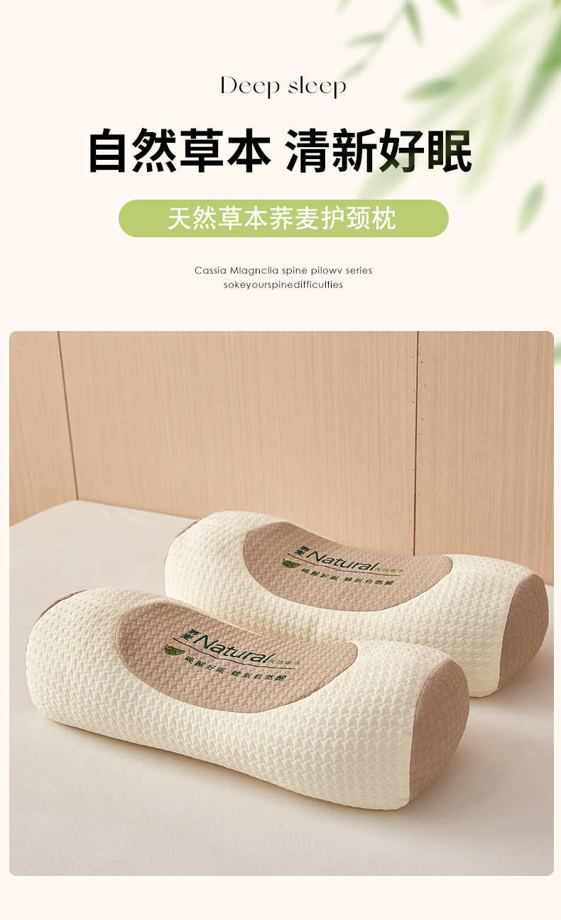 商品名称:眠多宝2025新款天然草本荞麦枕枕头枕芯针织刺绣大凉山荞麦 浅咖