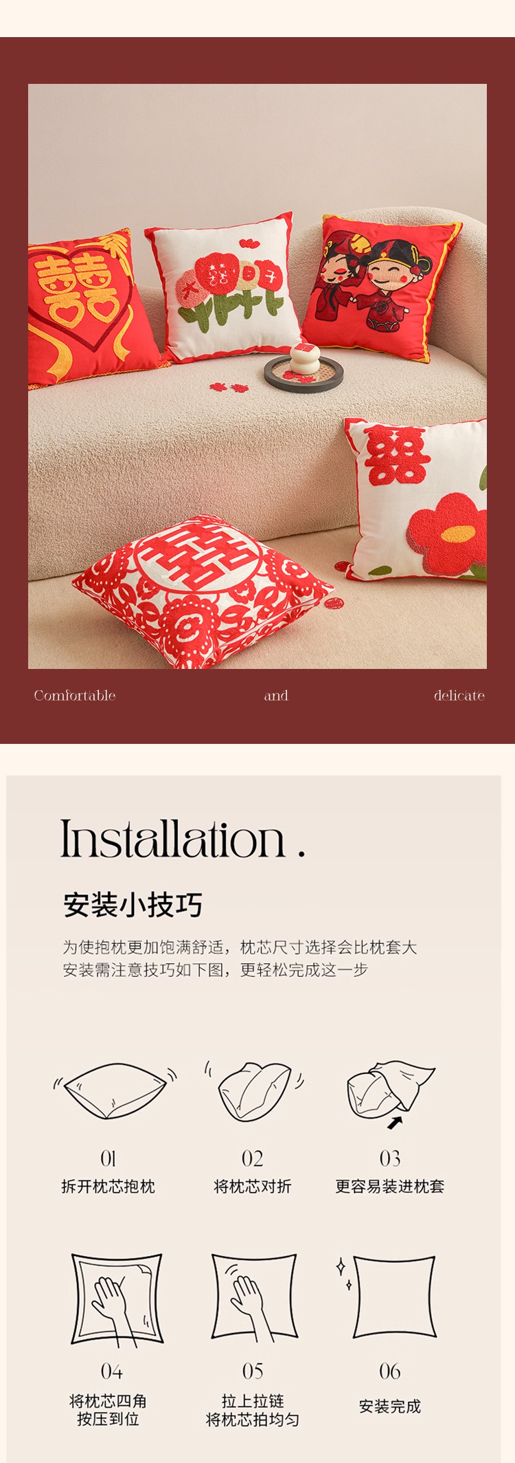 商品名称:诺可 2025新款全棉帆布刺绣婚庆系列毛巾绣抱枕枕头枕芯 磨毛布单抱枕芯