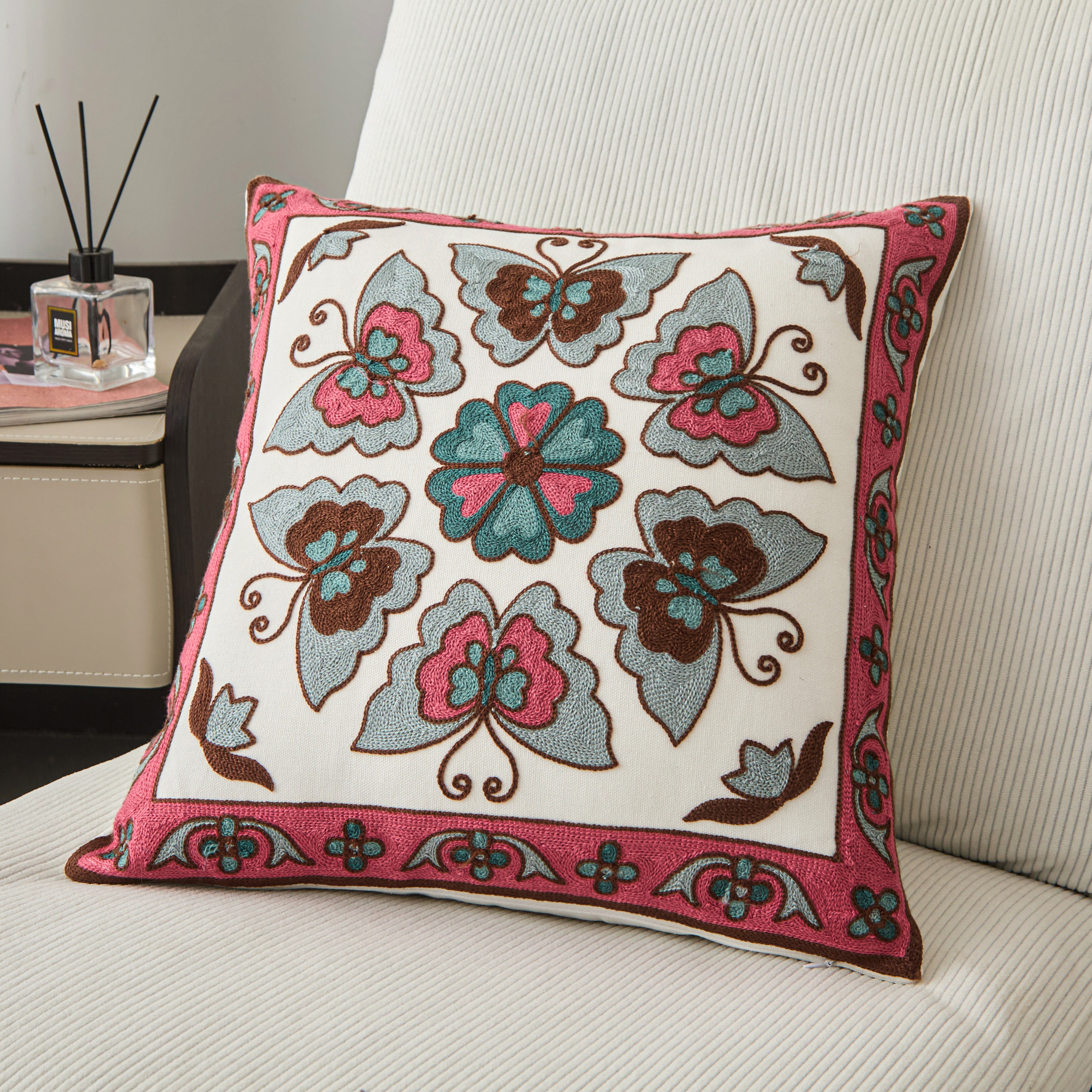 (总)诺可 2025新款全棉毛巾绣抱枕跨境花物语系列,组合,模特图,彩色石,蝶影,繁华拾光,粉蝴蝶,禾穗,花环,花卉-橙,花卉-粉,花雾,花盏,岚山,林礼,绿蝴蝶,蔓藤,木瑾花,南瓜,霓虹,柠檬叶,山奈,石榴蓝,石榴紫,树叶,禧朵,夏日铃兰,向阳花,星葵,叶坊,雨棠,枝瑾,紫蝴蝶,紫蕊,磨毛布单抱枕芯