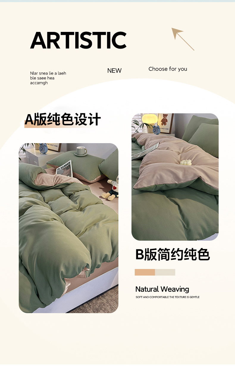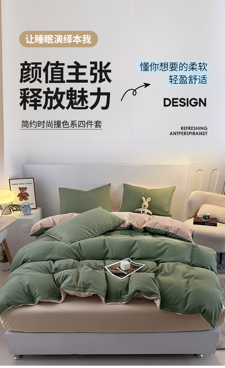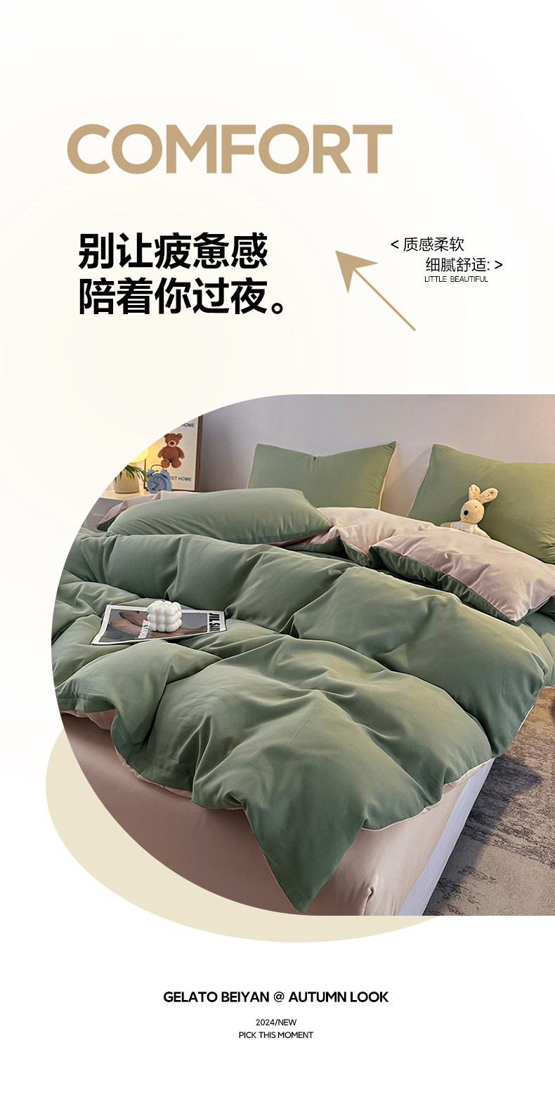 当前位置: 91家纺网 > 商品网购 > 床品套件 > 四件套 > 普通磨毛四件套 > 优纤家纺 2025新款简约亲肤四件套床单床笠学生三件套-纯色混搭系列 豆绿卡其