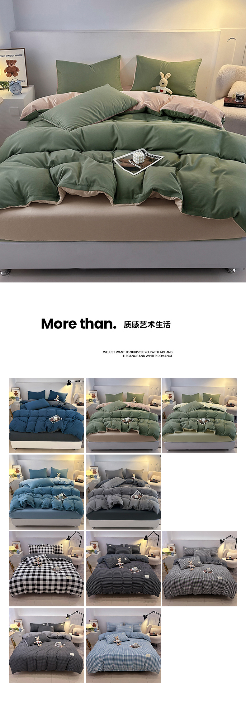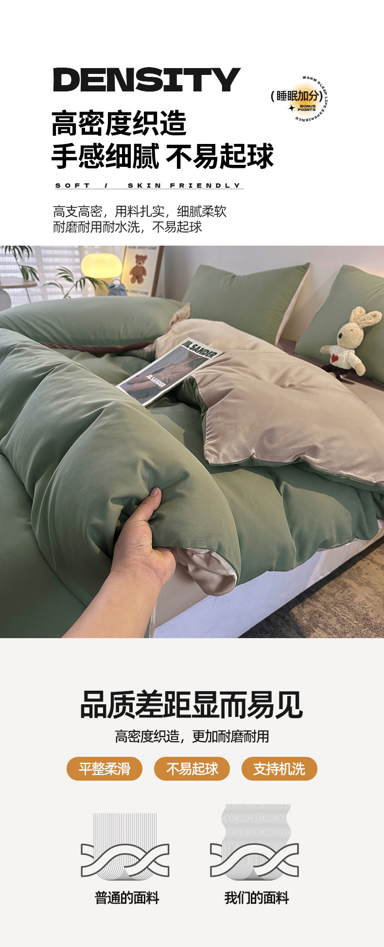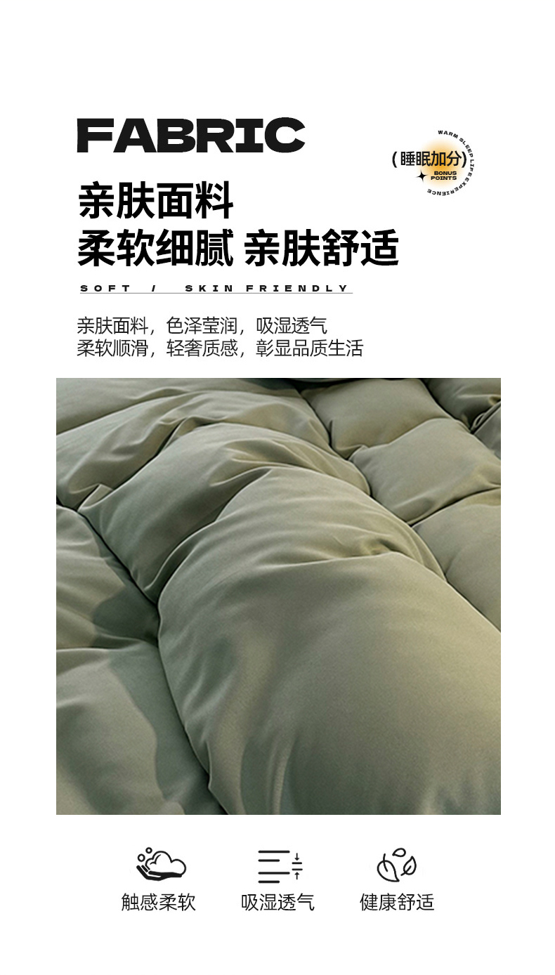 当前位置: 91家纺网 > 商品网购 > 床品套件 > 四件套 > 普通磨毛四件套 > 优纤家纺 2025新款简约亲肤四件套床单床笠学生三件套-纯色混搭系列 豆绿卡其