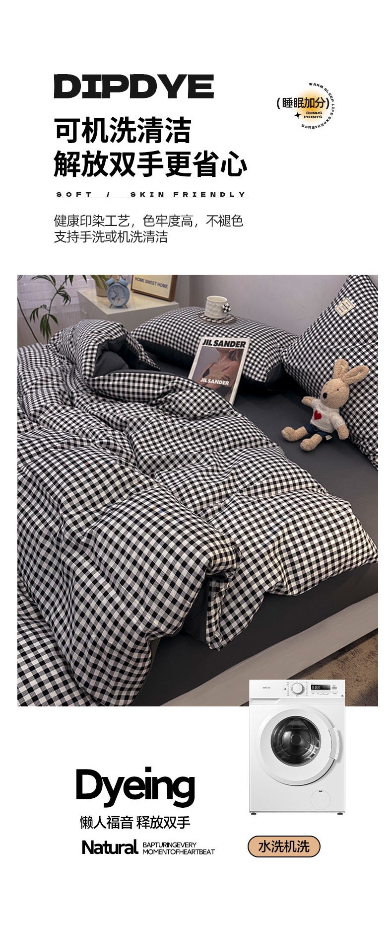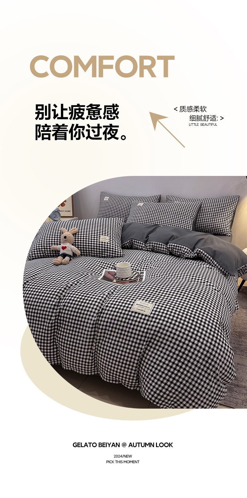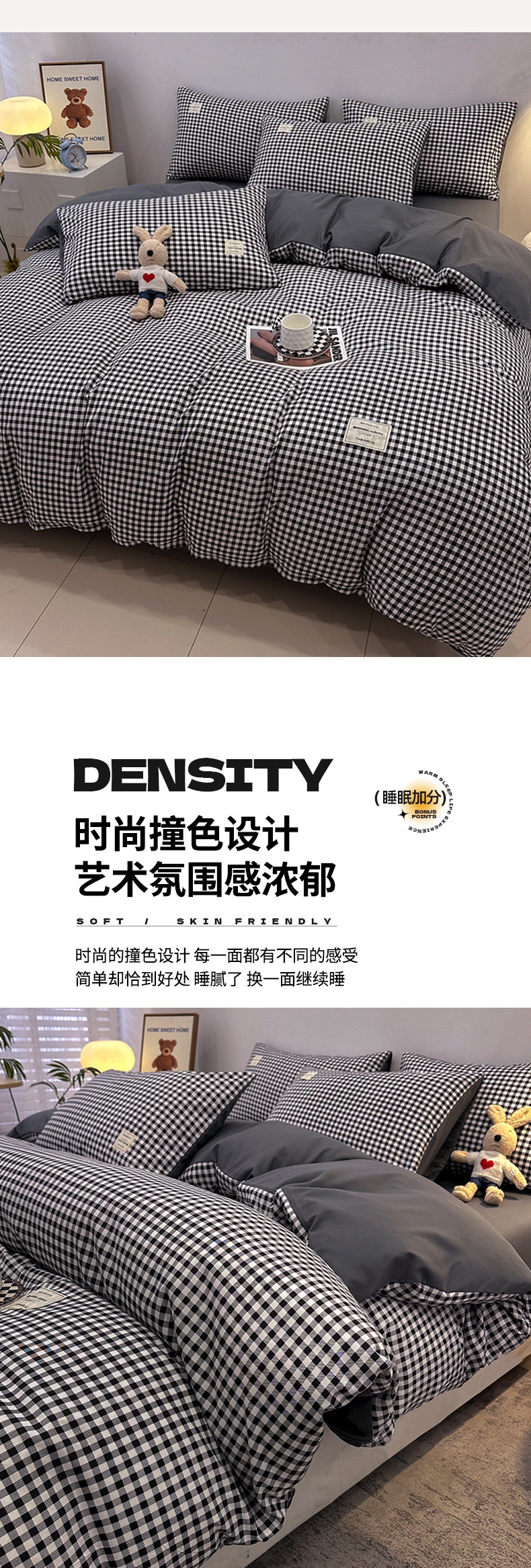 当前位置: 91家纺网 > 商品网购 > 床品套件 > 四件套 > 普通磨毛四件套 > 优纤家纺 2025新款简约亲肤四件套床单床笠学生三件套-格子条纹系列 黑白小格