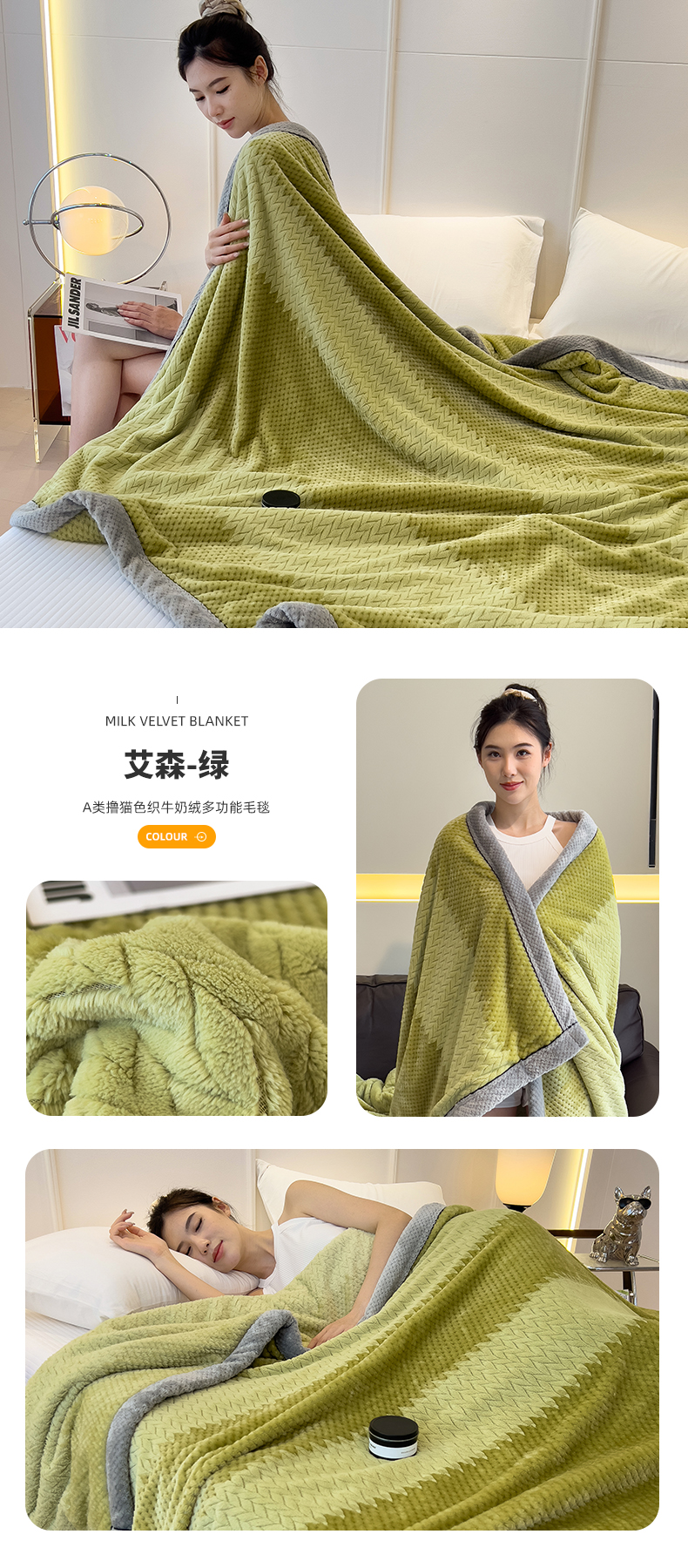 商品名称:世纪绒品 2025新款A类撸猫色织牛奶绒多功能毛毯 艾森-绿