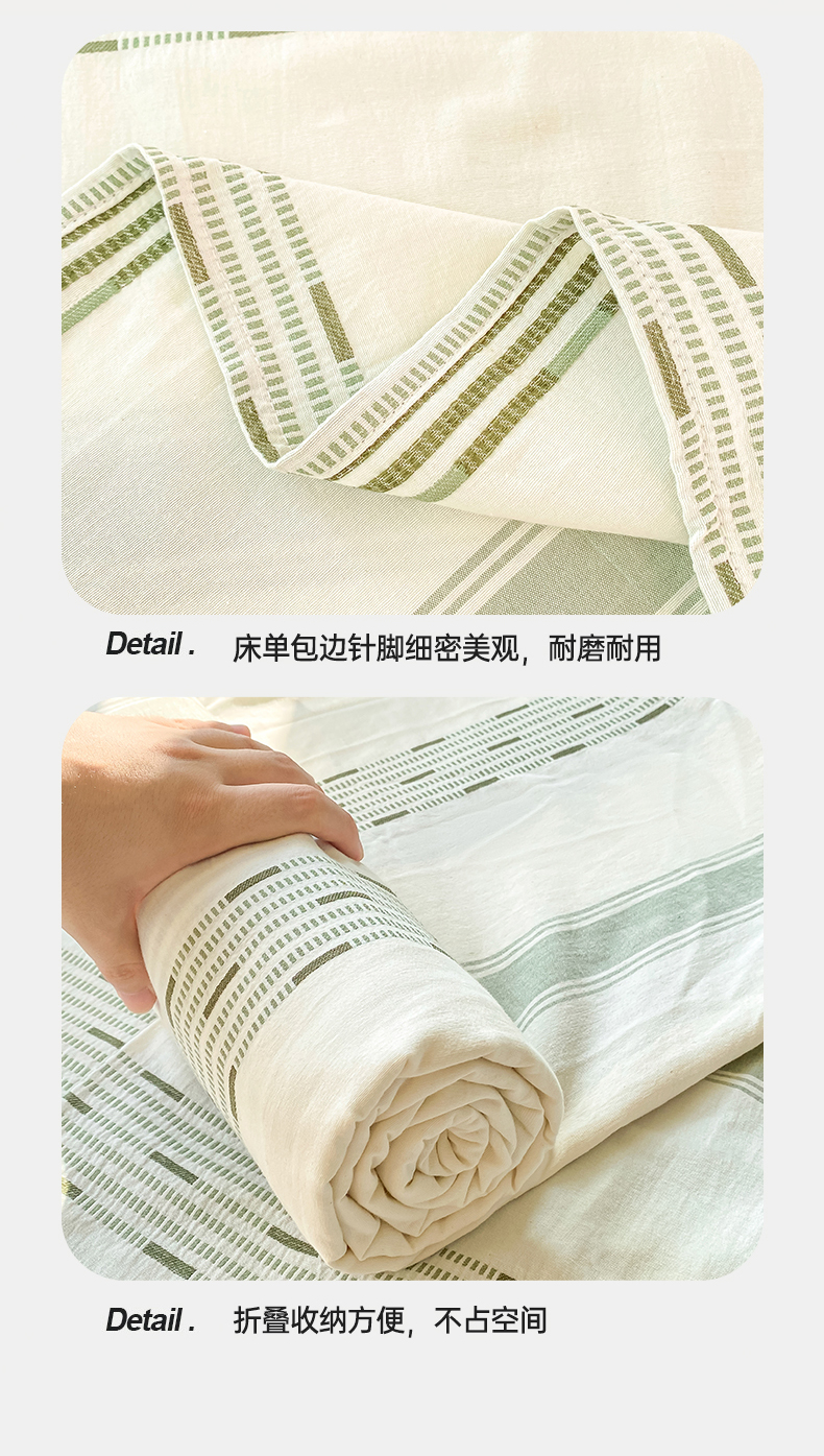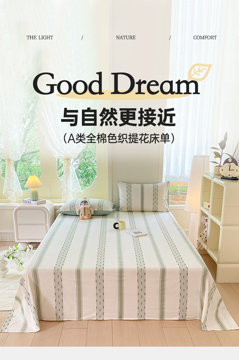 灰鲸 2025新款全棉色织提花单品床单 素瑾-绿