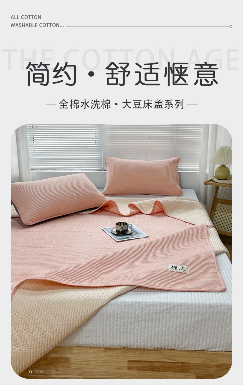 • 91家纺网 家纺一手货源 找家纺 拾小柒 2025新款全棉色织水洗棉夹棉防滑床盖 姜黄色