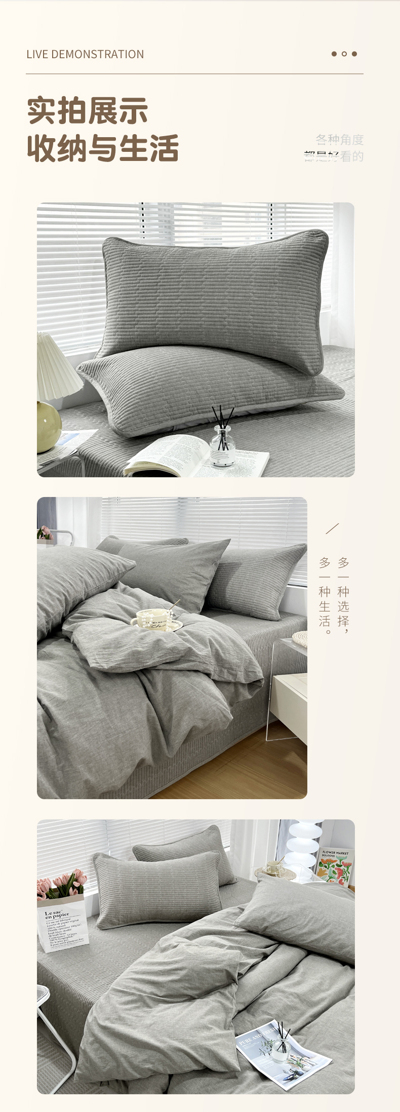 商品名称:拾小柒 2025新款全棉色织水洗棉夹棉隔脏污枕套 鹅黄色