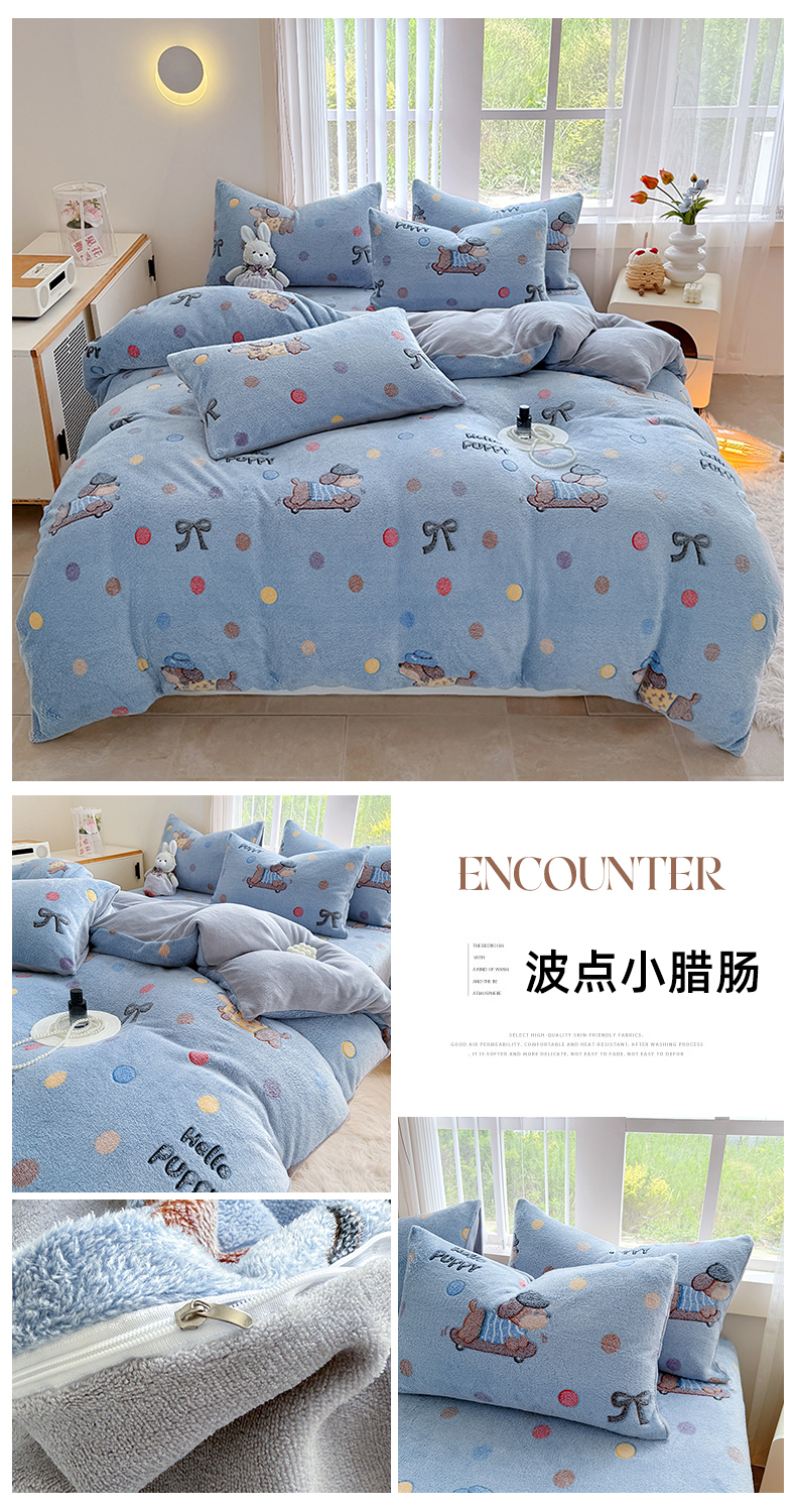 商品名称:慕梵家居2025新款雪花绒被套 波点小腊肠