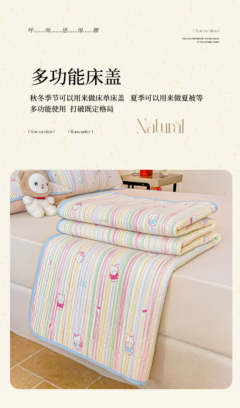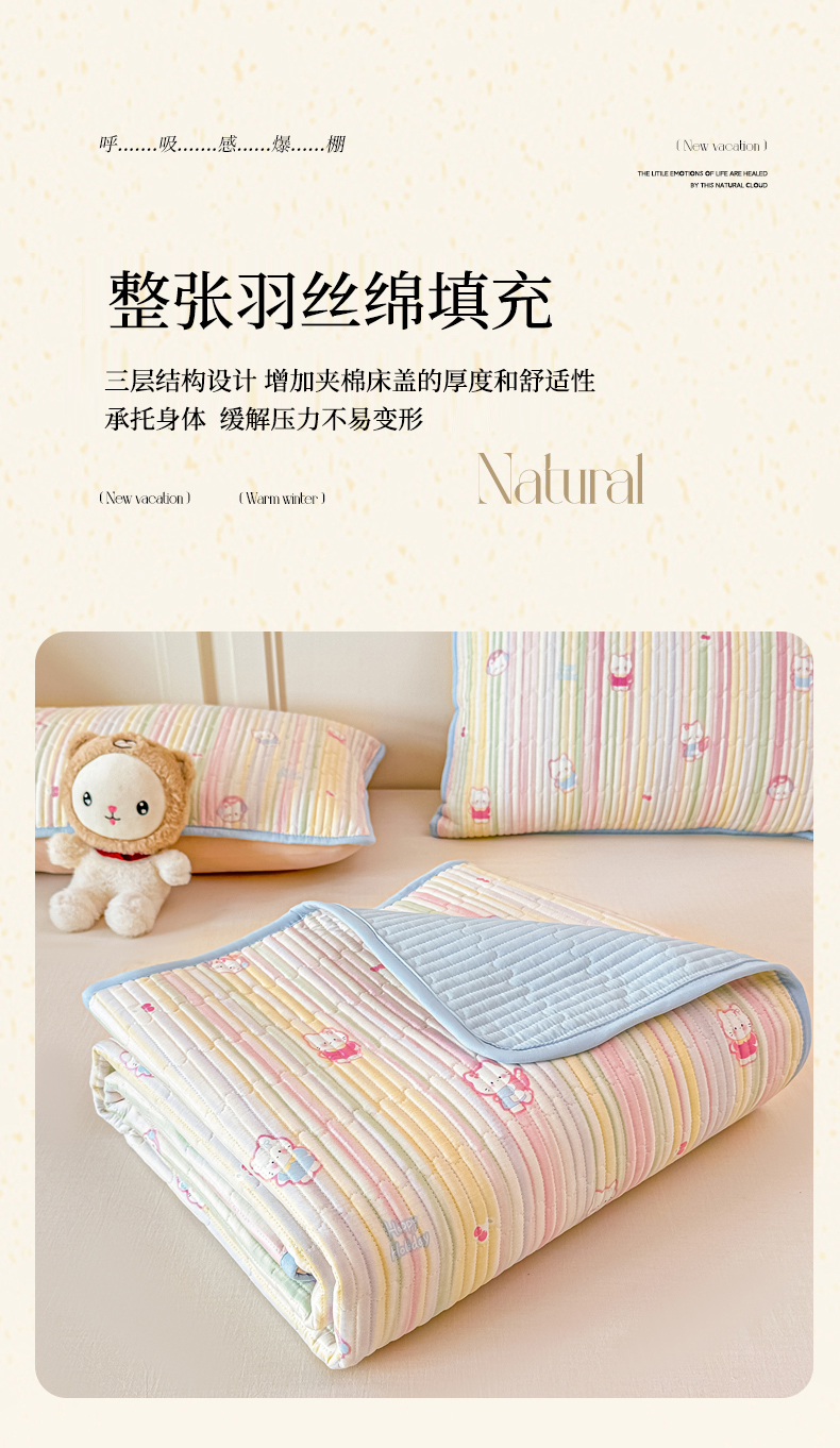 恒尚居 2025新款A类全棉印花夹棉床盖四季款-系列一 【彩虹猫】全棉-四季款