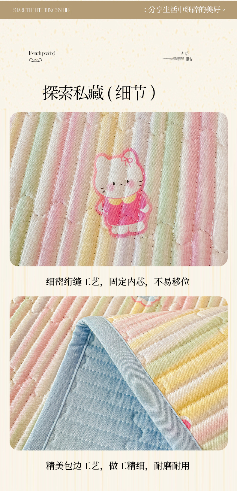 • 91家纺网 家纺一手货源 找家纺 恒尚居 2025新款A类全棉印花夹棉床盖四季款-系列一 【彩虹猫】全棉-四季款