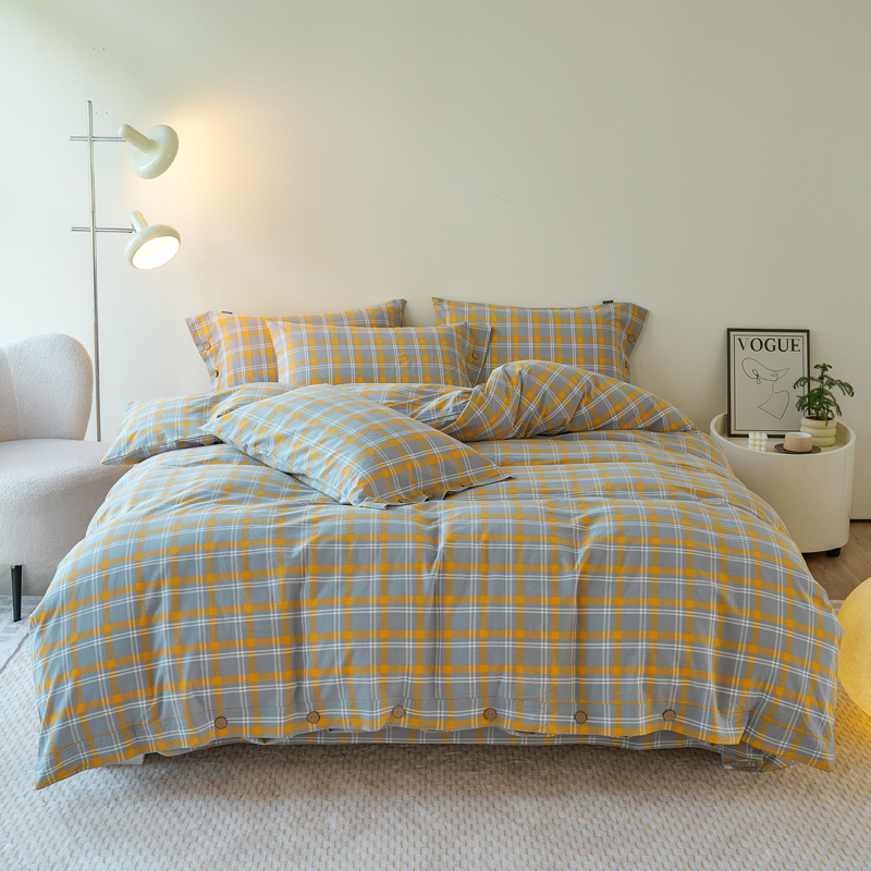 贝尔 PELLHOME 全棉色织水洗棉格子单被套(可抖音代发) 细绿格