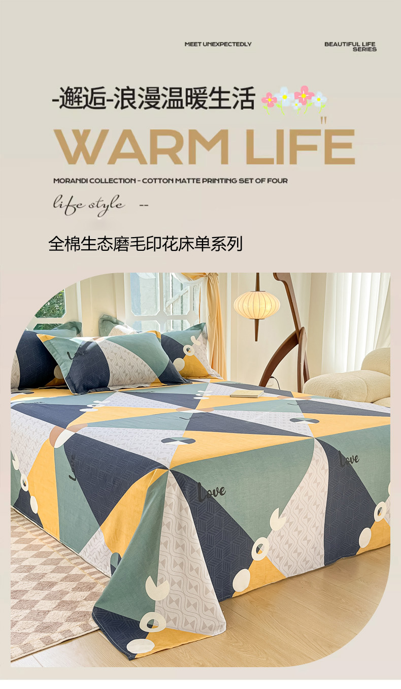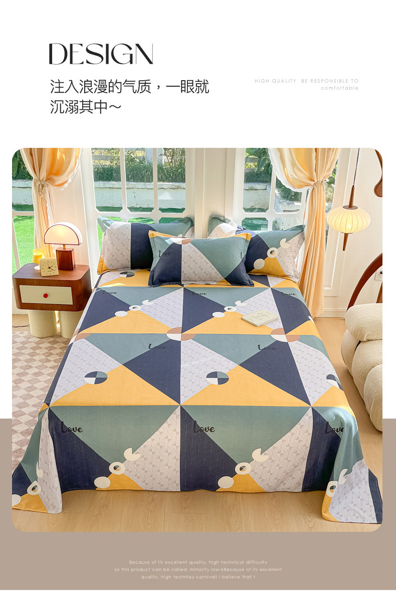 • 91家纺网 家纺一手货源 找家纺 眠博士 2025新款全棉混纺生态磨毛印花单床单 磨毛床单-菱形圆