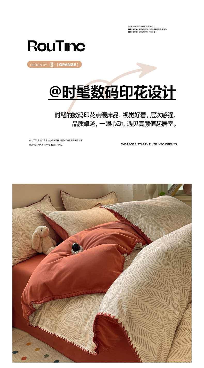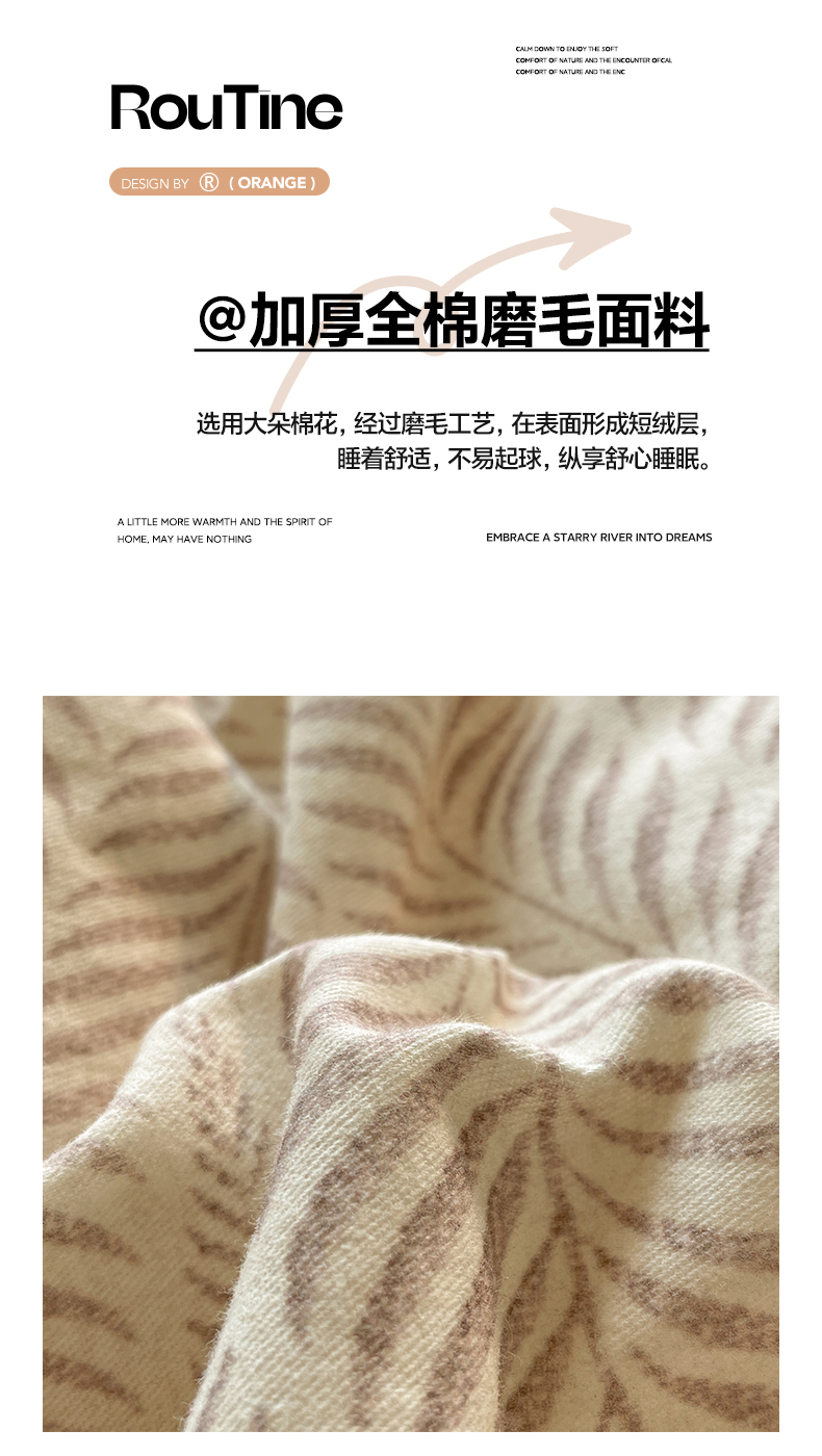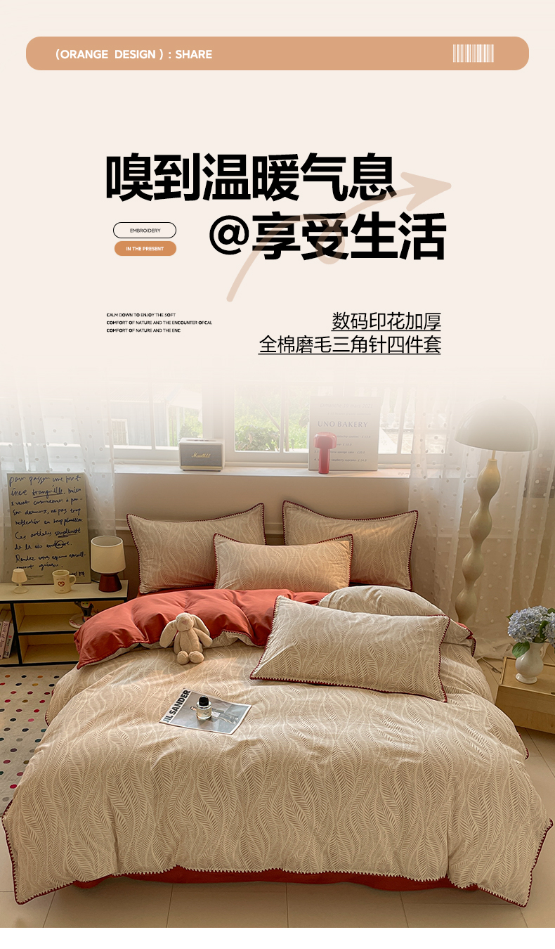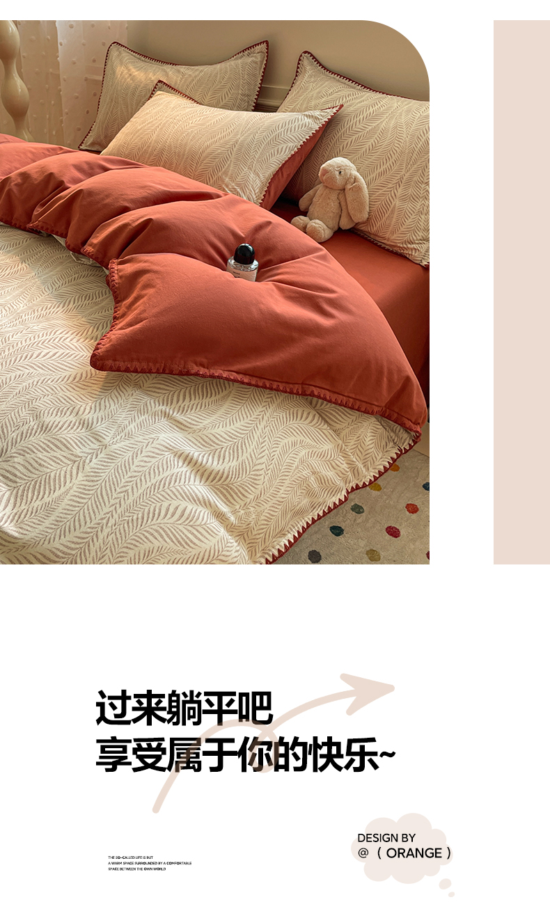 商品名称:如一 2025新款加厚全棉磨毛三角针四件套 原野-桔