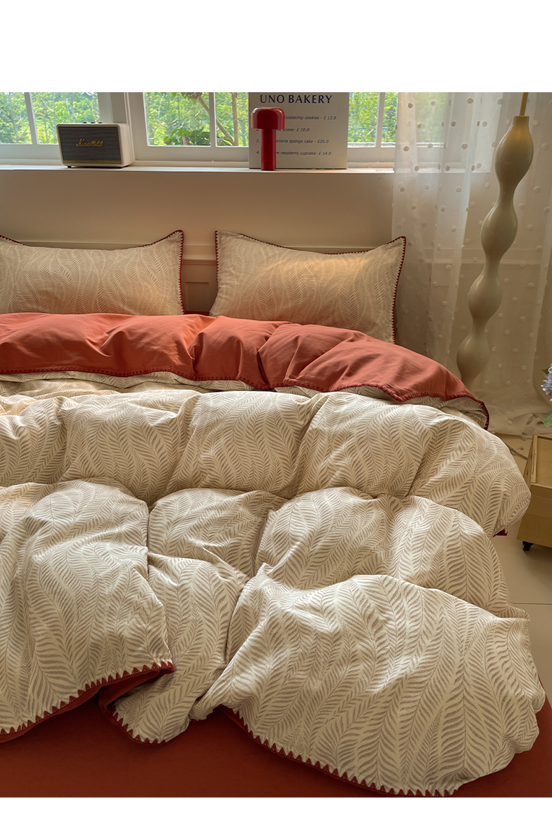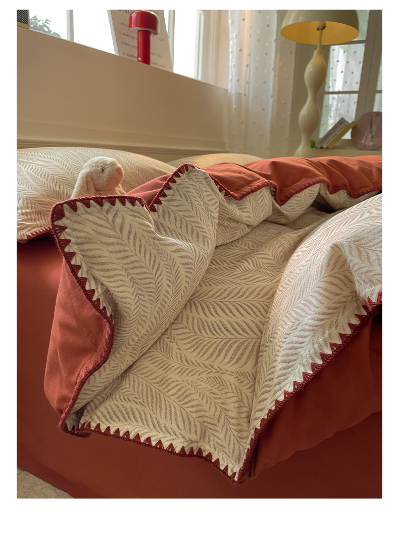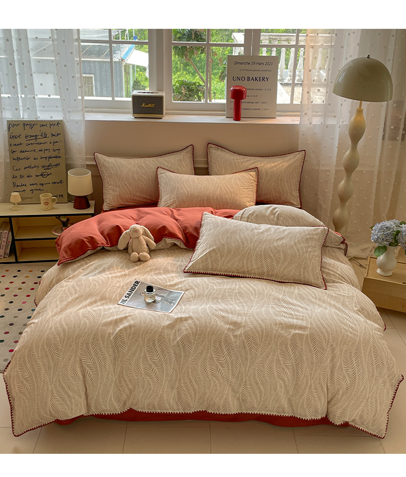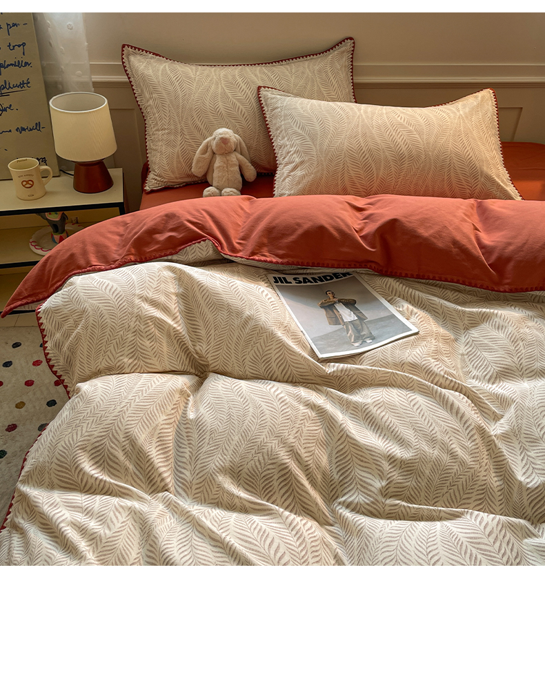 商品名称:如一 2025新款加厚全棉磨毛三角针四件套 原野-桔