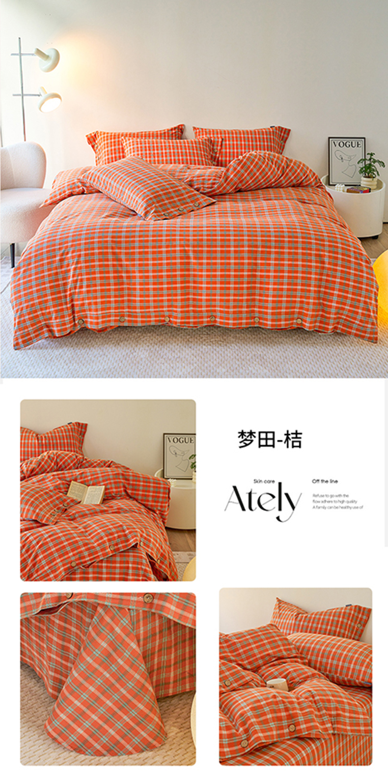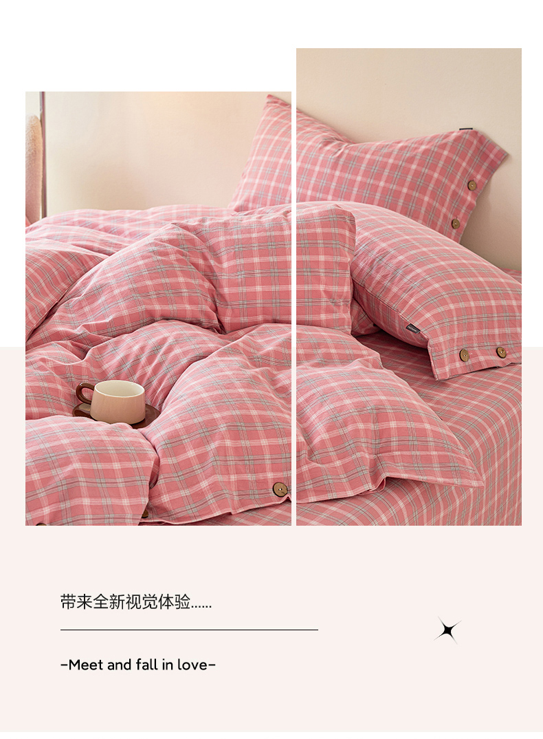 (总)贝尔 PELLHOME 全棉纽扣色织水洗棉格子四件套(可抖音代发)
