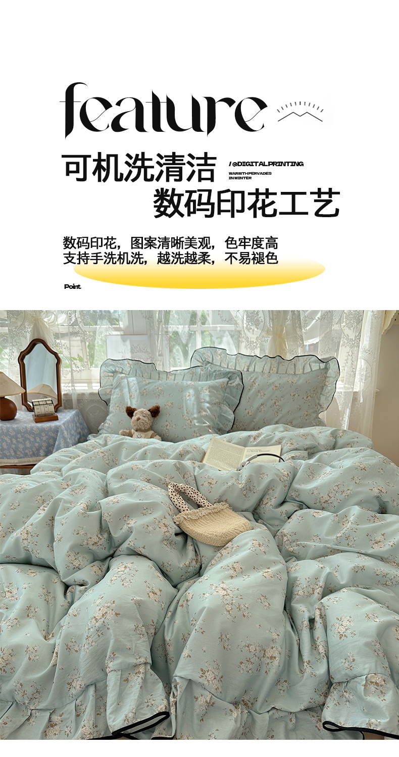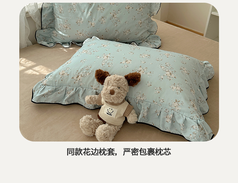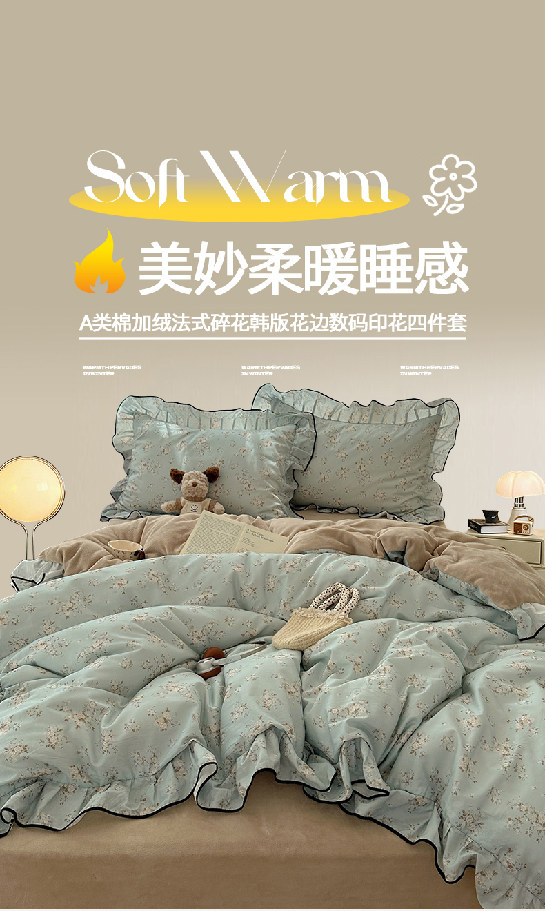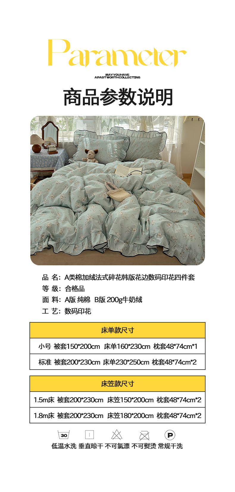 商品名称:桃子家居 2025新款A类纯棉数码印花法式碎花棉加绒韩版花边碎花加厚牛奶绒四件套 棉加绒-花边芳华