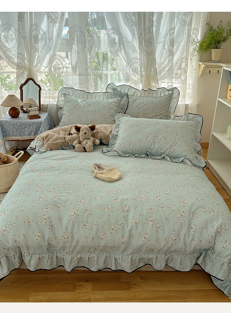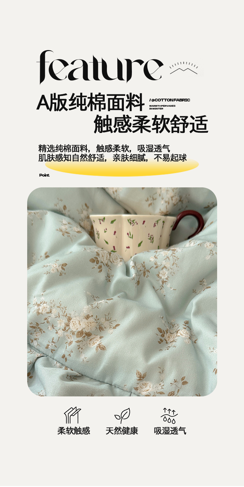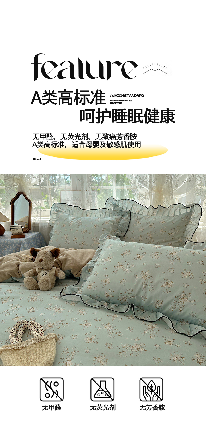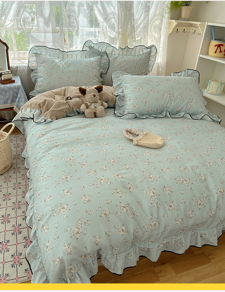 商品名称:桃子家居 2025新款A类纯棉数码印花法式碎花棉加绒韩版花边碎花加厚牛奶绒四件套 棉加绒-花边芳华