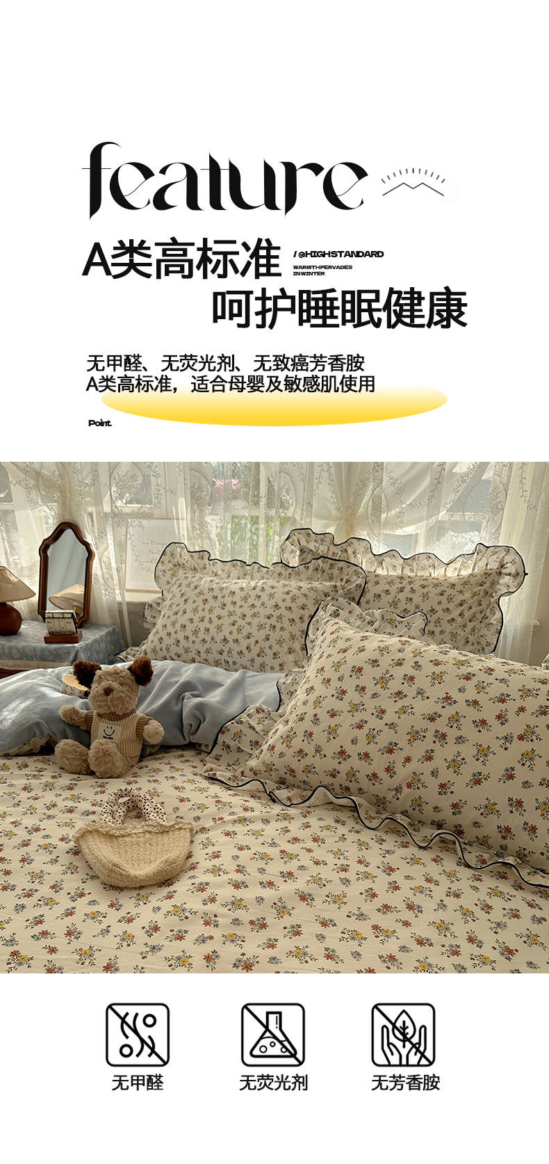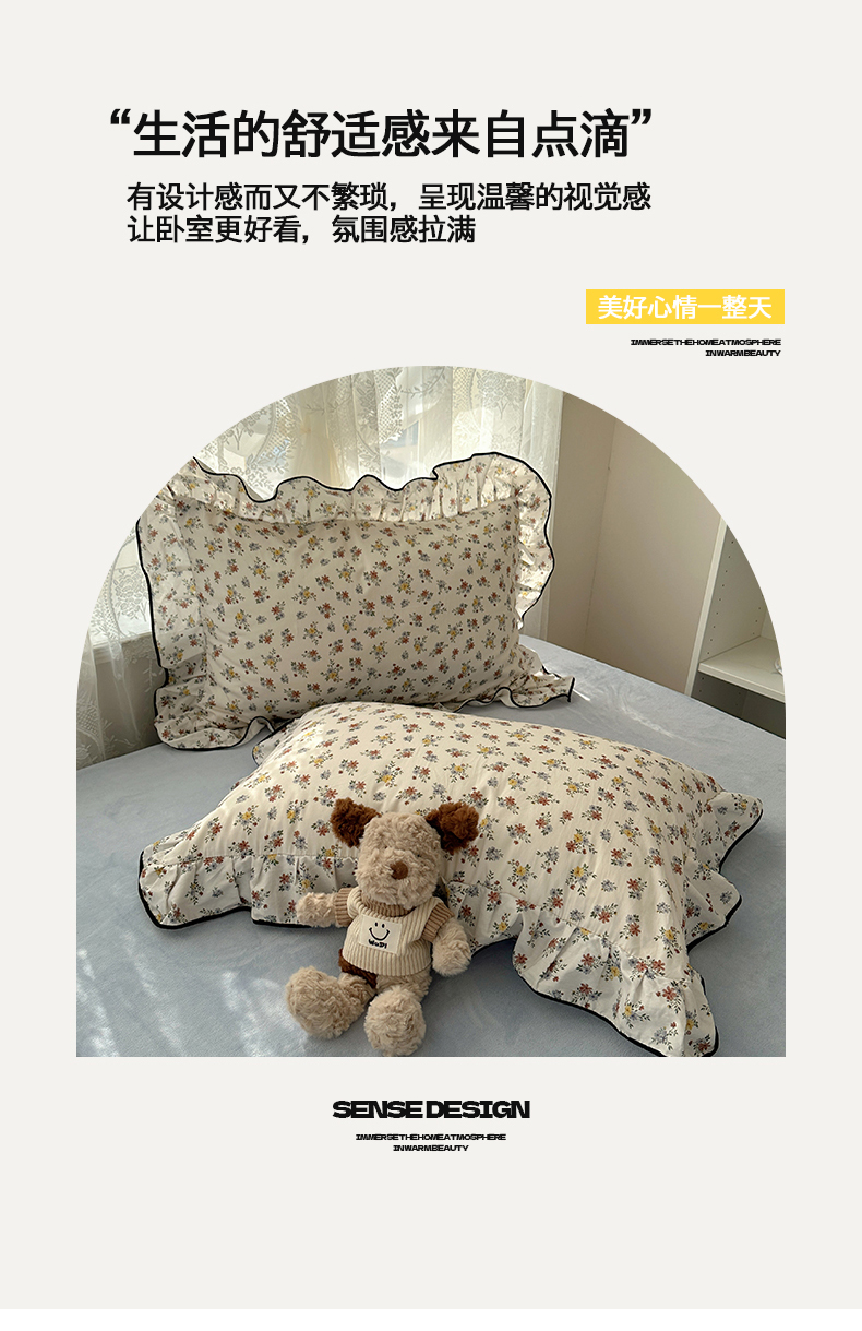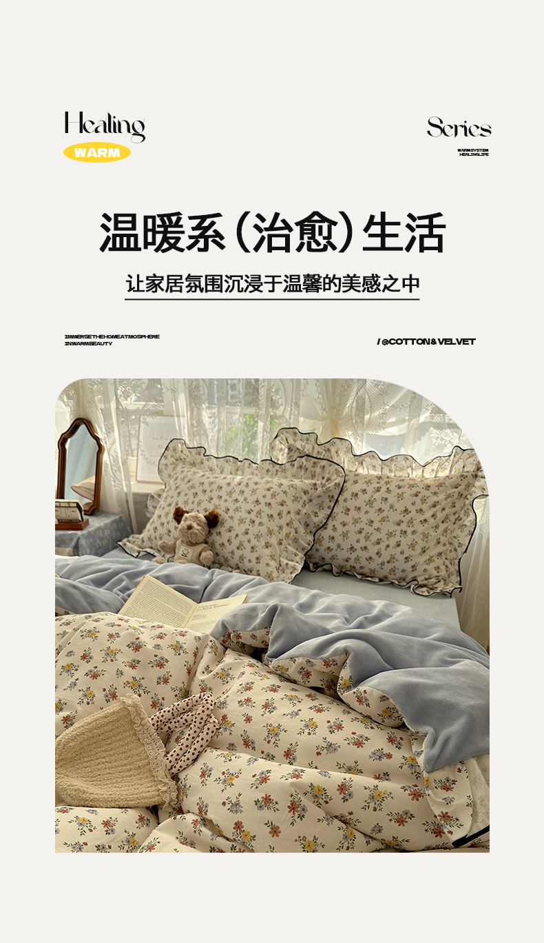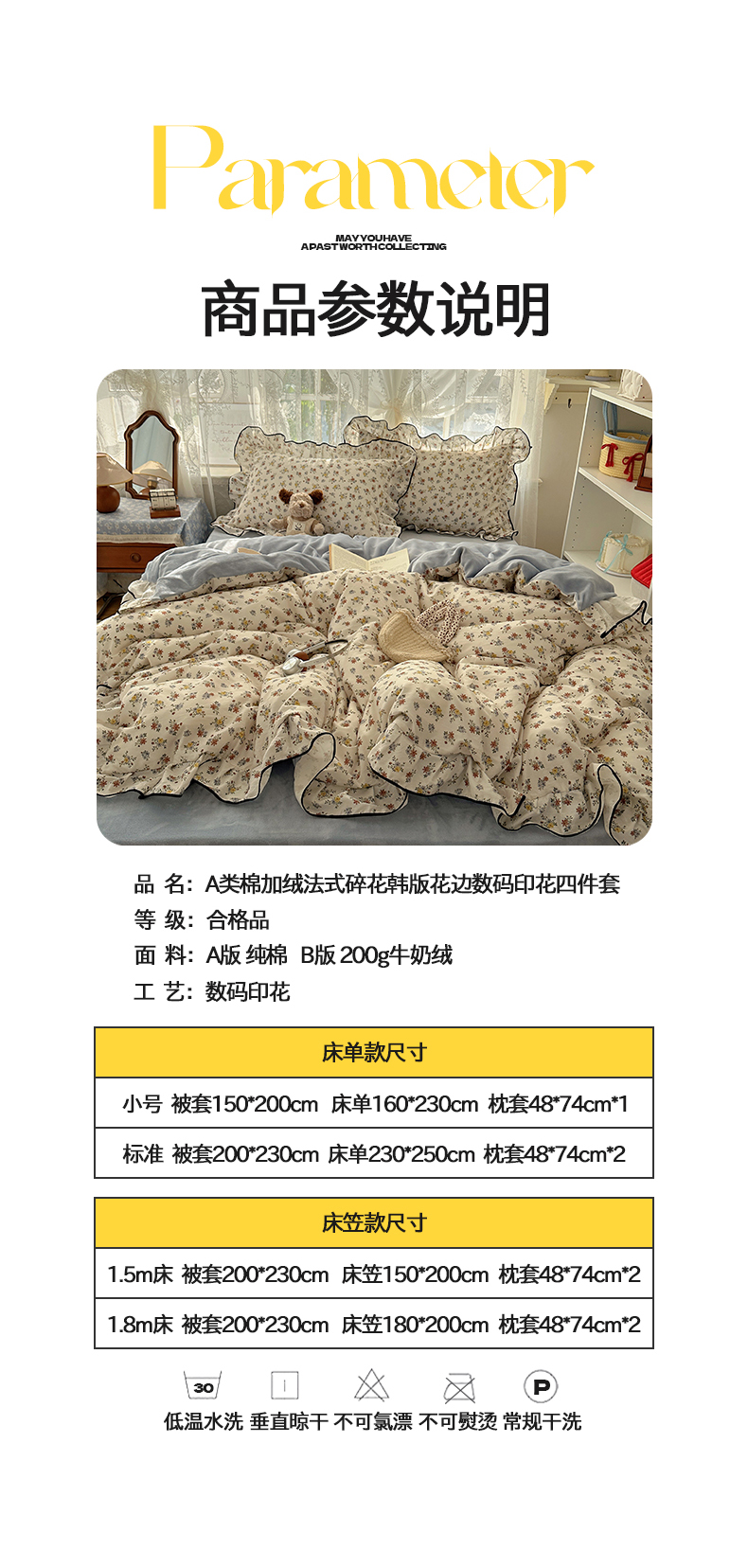 商品名称:桃子家居 2025新款A类纯棉数码印花法式碎花棉加绒韩版花边碎花加厚牛奶绒四件套 棉加绒-花边素瑾