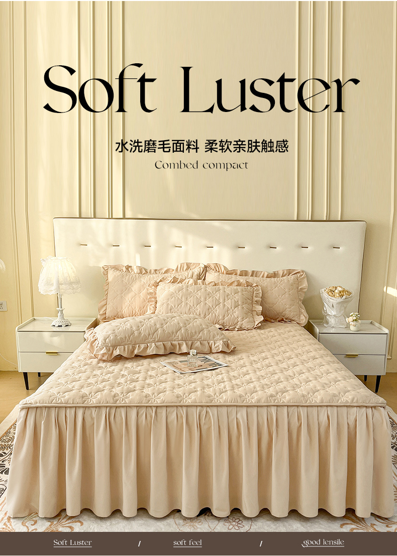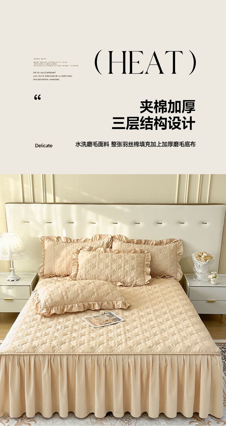 商品名称:鼎丰家纺 2025新款水洗磨毛夹棉床裙套件-曼可系列 曼可-卡其
