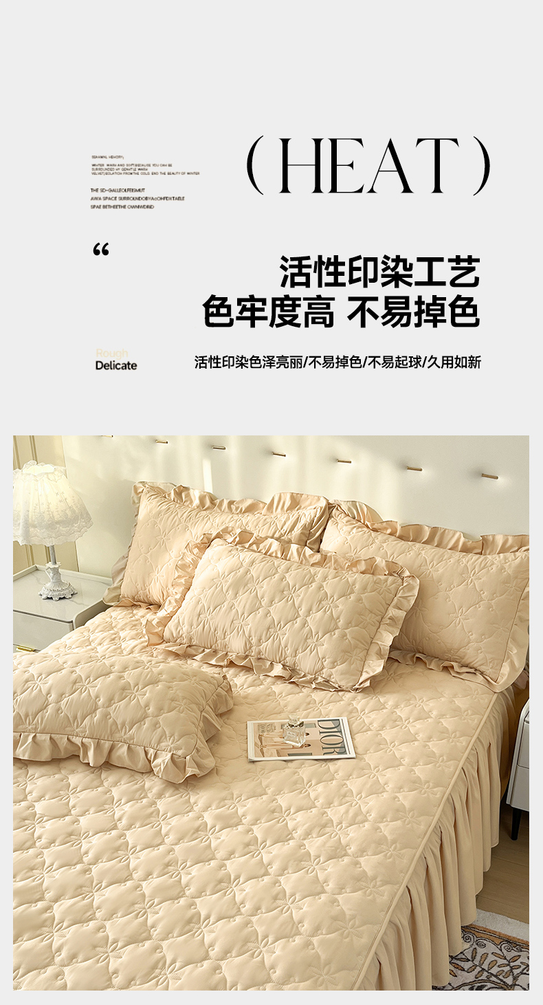 (总)鼎丰家纺 2025新款皱皱纱夹棉床裙三件套-花影系列,花影-豆沙,花影-浅蓝,花影-浅米,花影-浅玉,花影-清新绿,花影-樱花粉