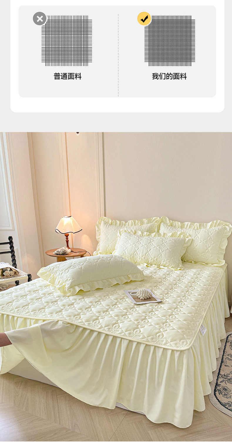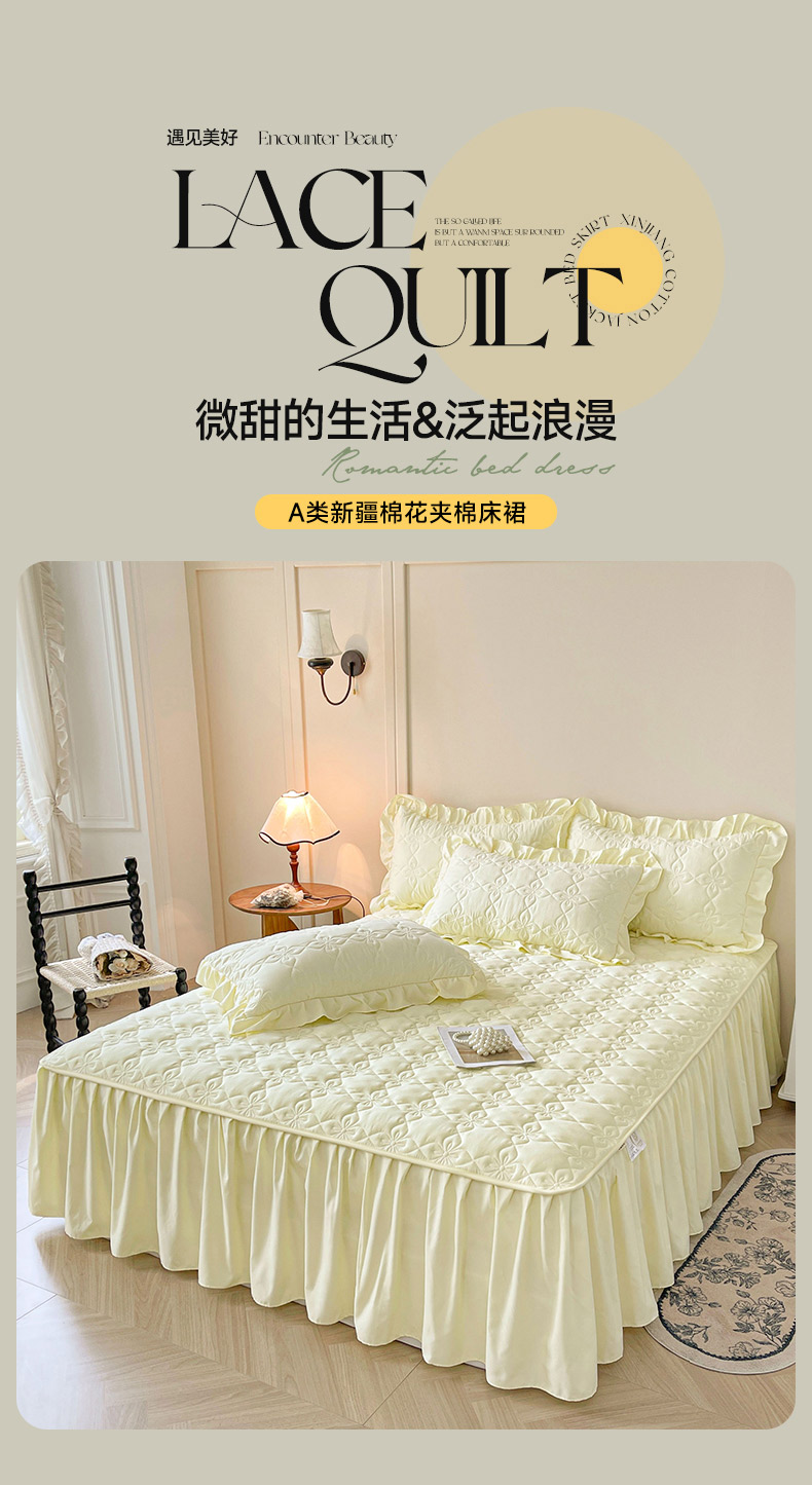• 91家纺网 家纺一手货源 找家纺 (总)鼎丰家纺 2025新款皱皱纱双层花边夹棉床裙单床裙床裙单品-梦想系列,梦想-奶油黄,梦想-嫩绿,梦想-樱花粉,梦想-浅玉,梦想-浅豆沙,梦想-浅蓝