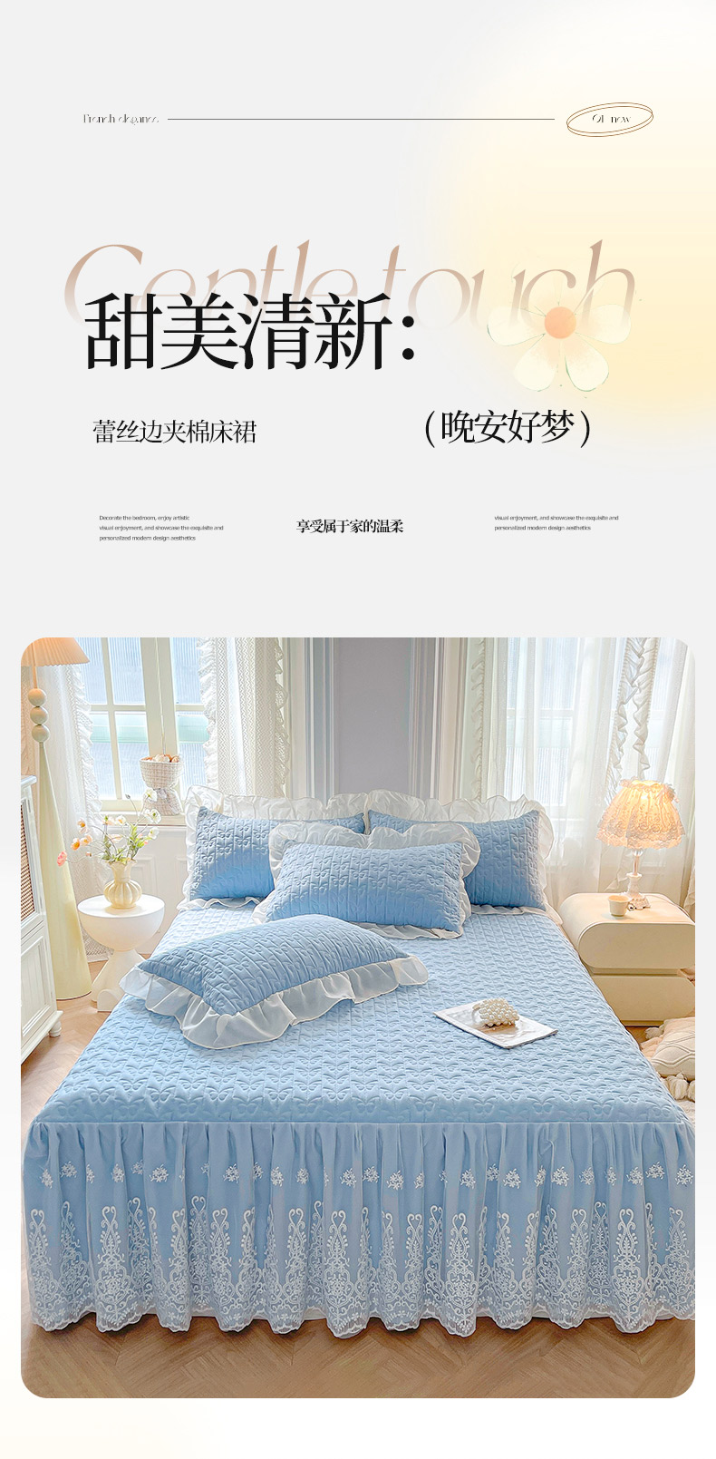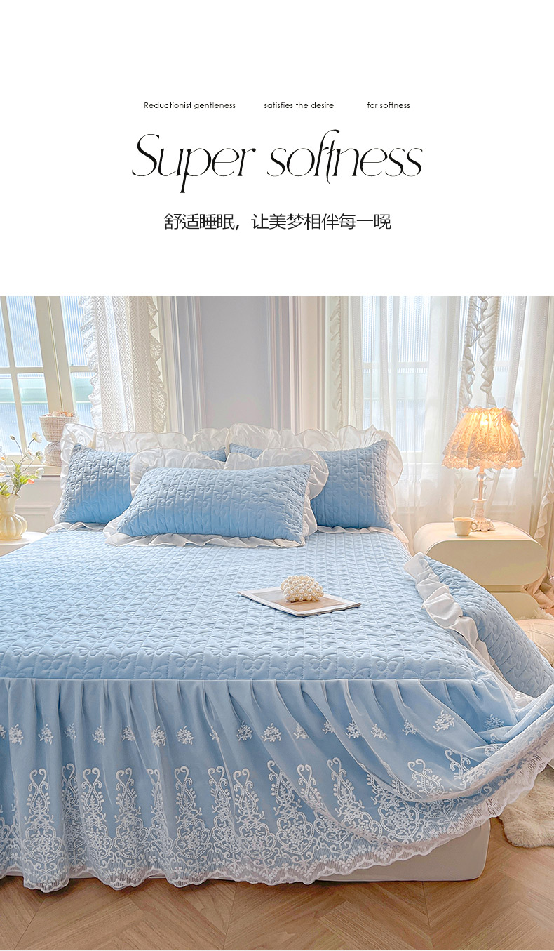 鼎丰家纺 2025新款蕾丝夹棉床裙-洛可可系列 洛可可-蓝
