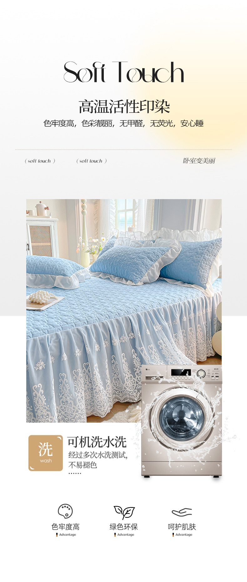 商品名称:鼎丰家纺 2025新款蕾丝夹棉床裙-洛可可系列 洛可可-蓝