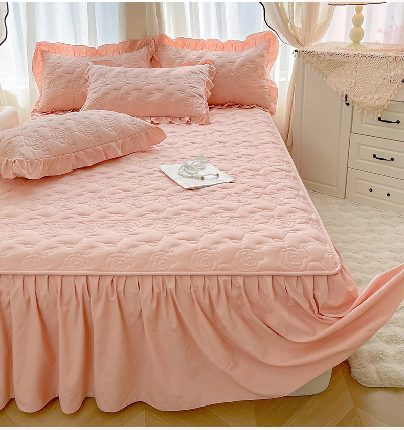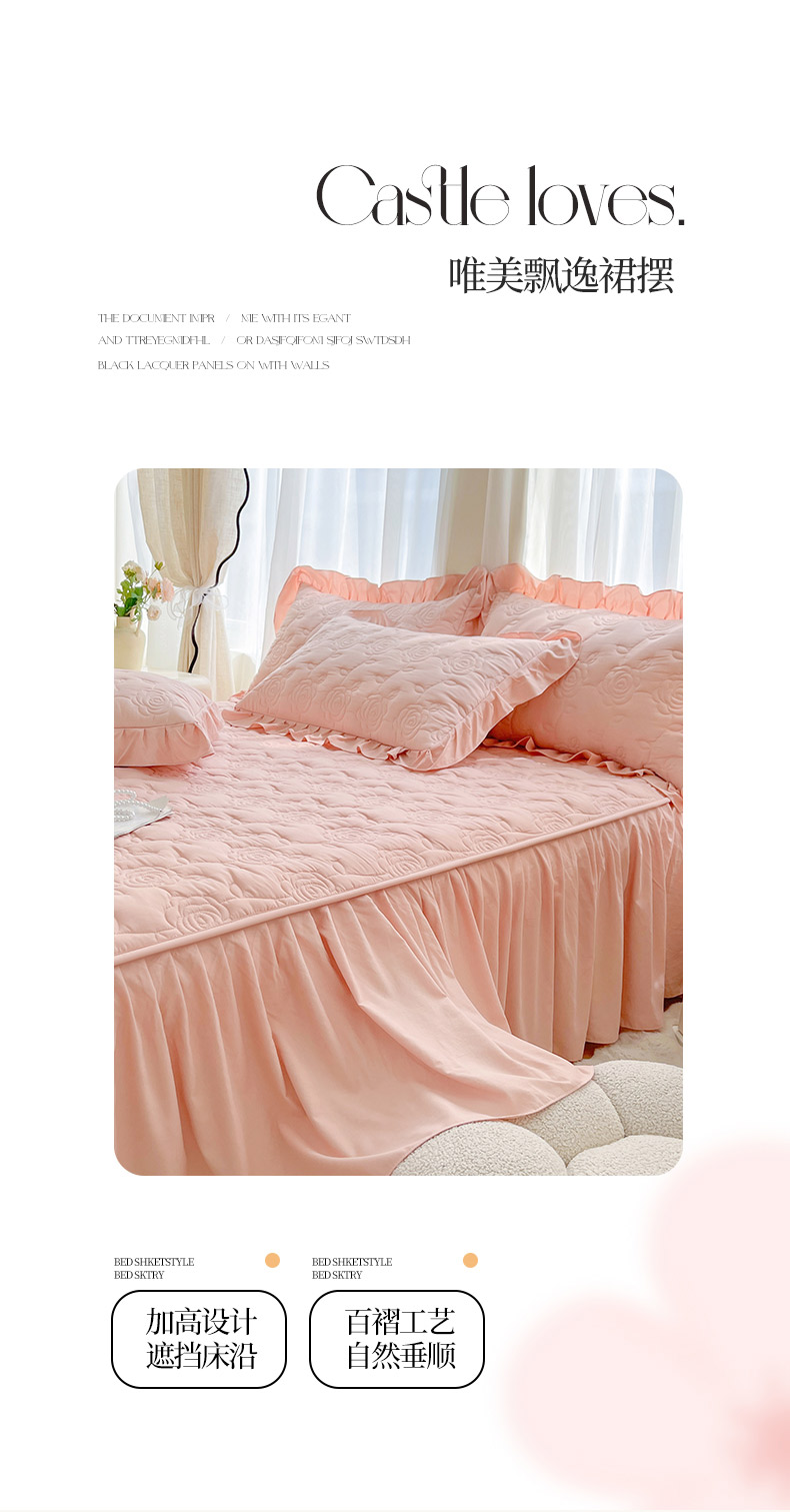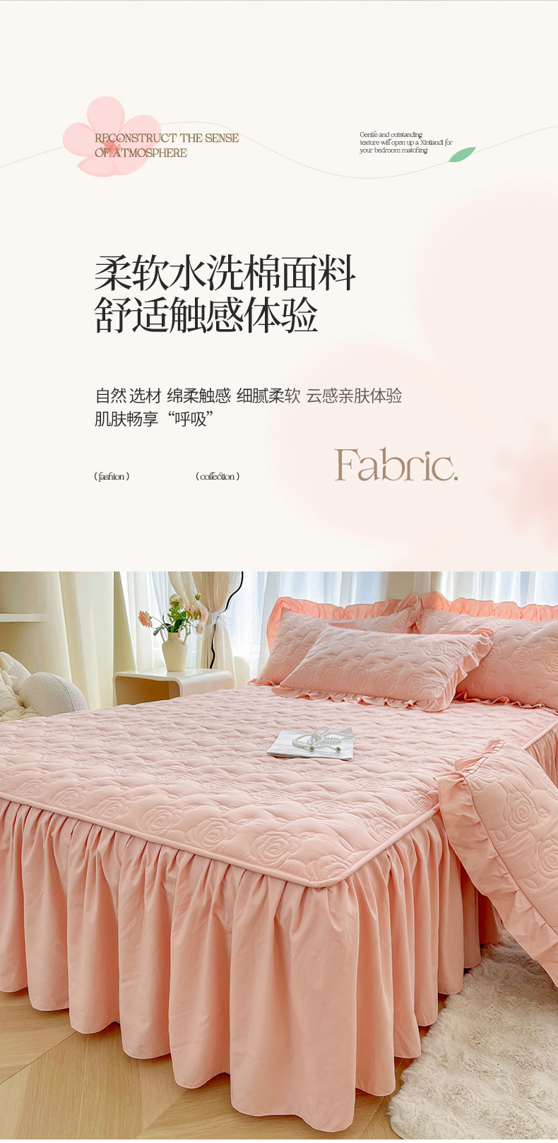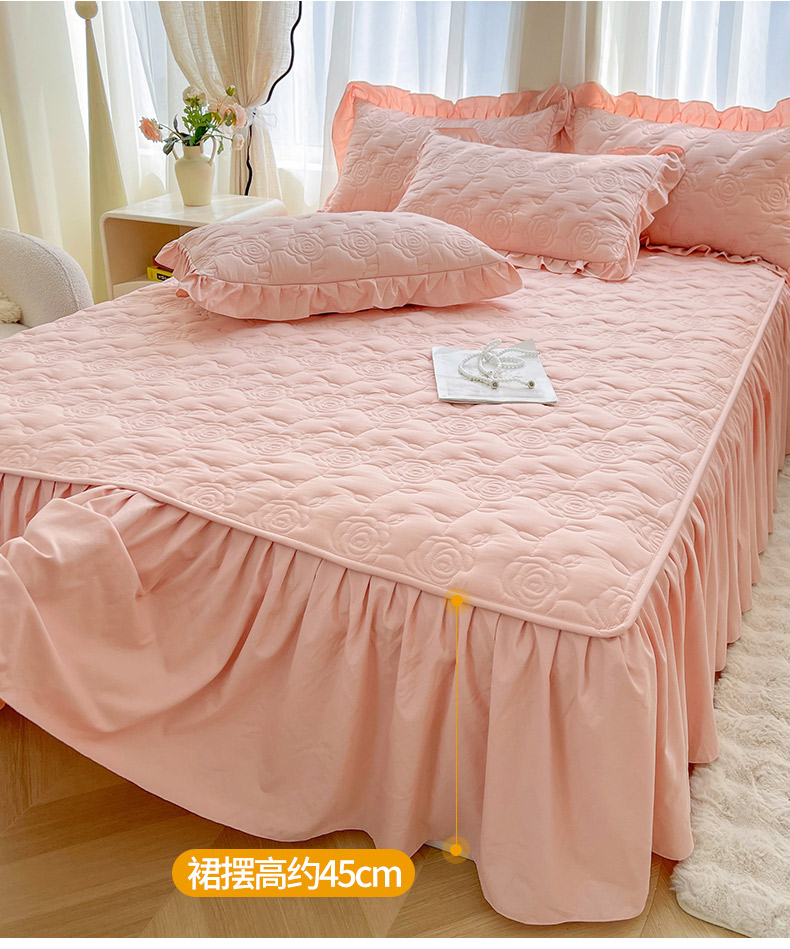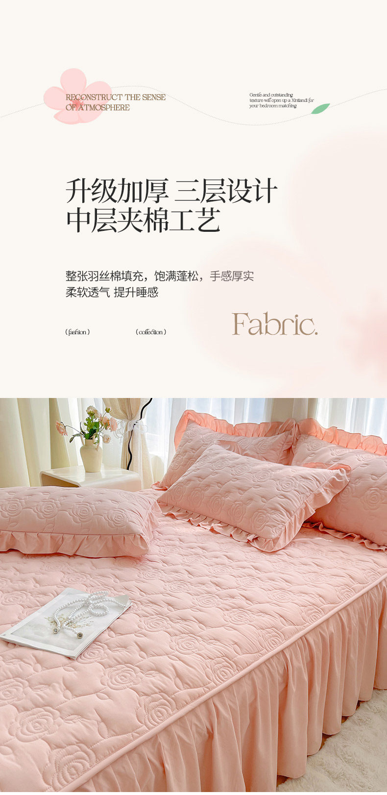 商品名称:鼎丰家纺 2025新款纯色夹棉床裙-玫瑰之恋 玫瑰之恋-橘粉
