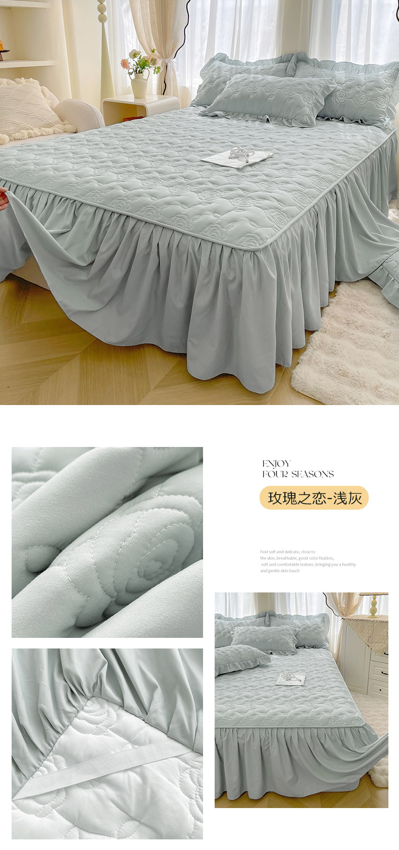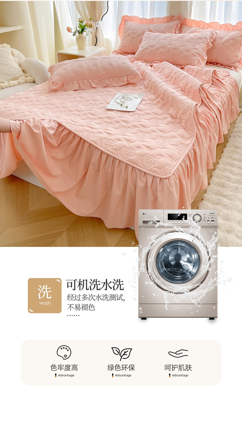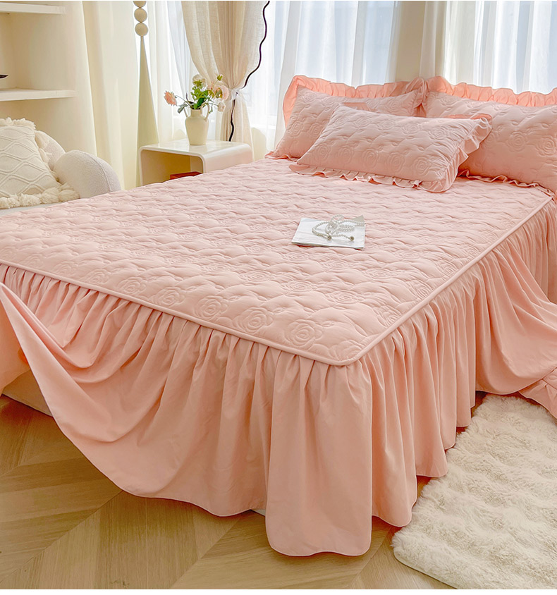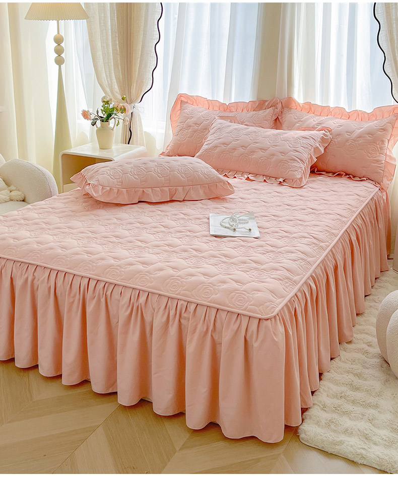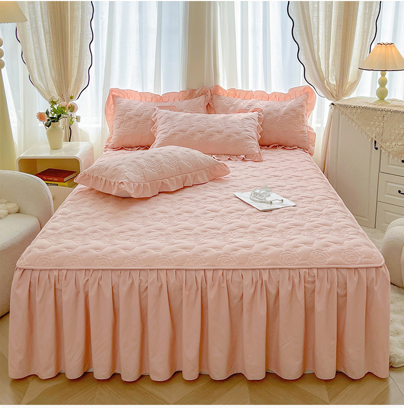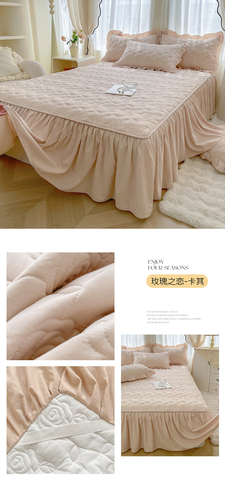 商品名称:鼎丰家纺 2025新款纯色夹棉床裙-玫瑰之恋 玫瑰之恋-橘粉