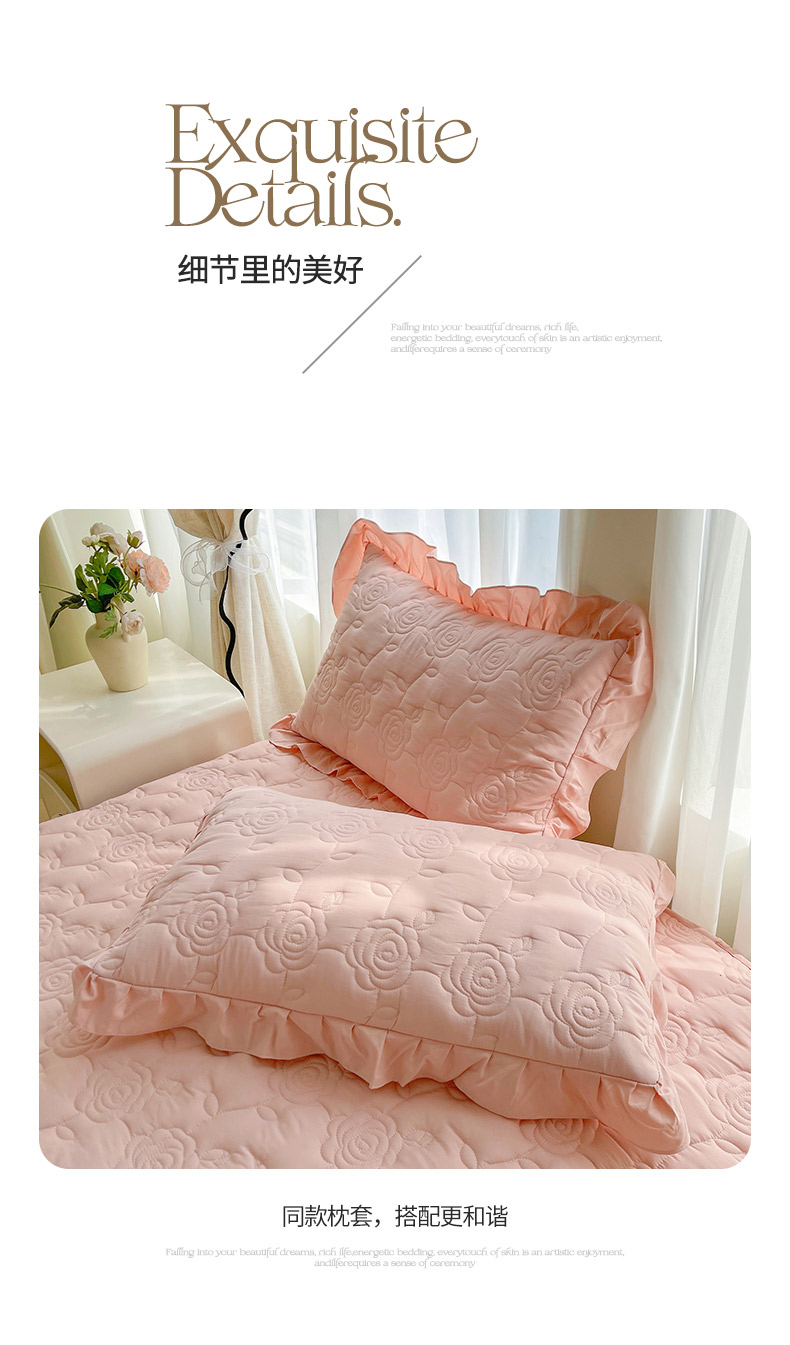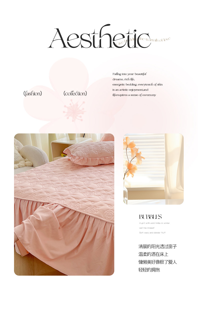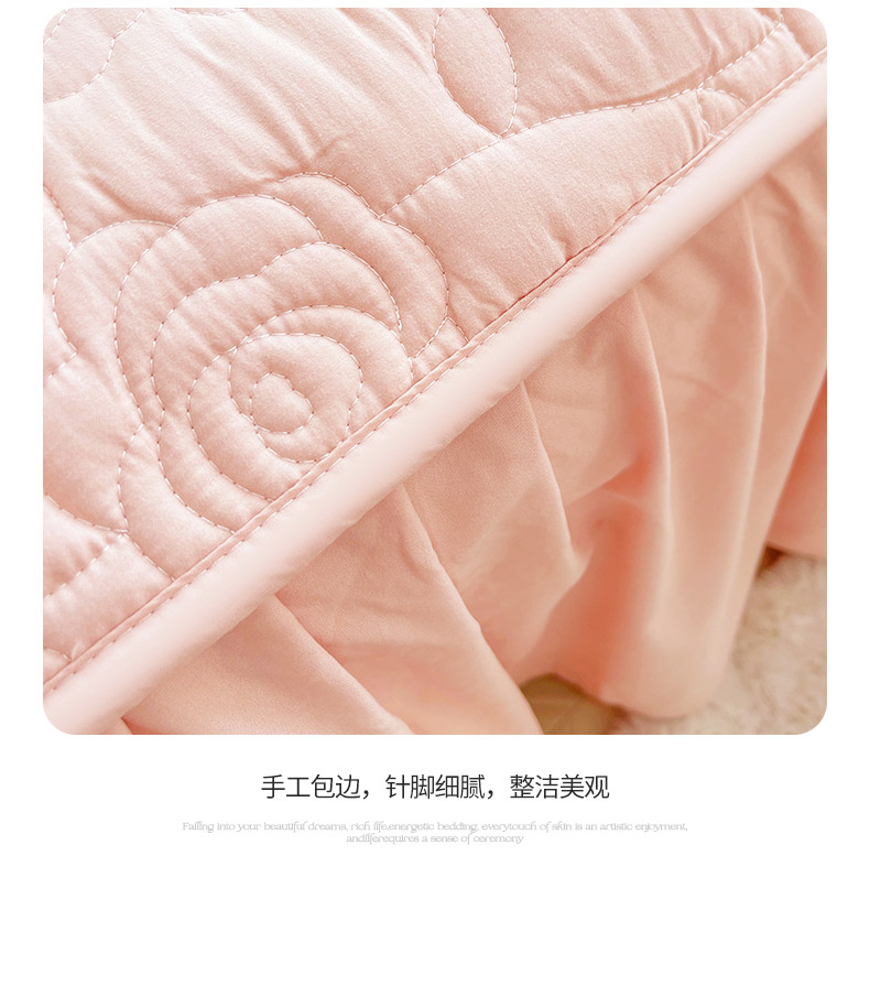鼎丰家纺 2025新款纯色夹棉床裙-玫瑰之恋 玫瑰之恋-橘粉