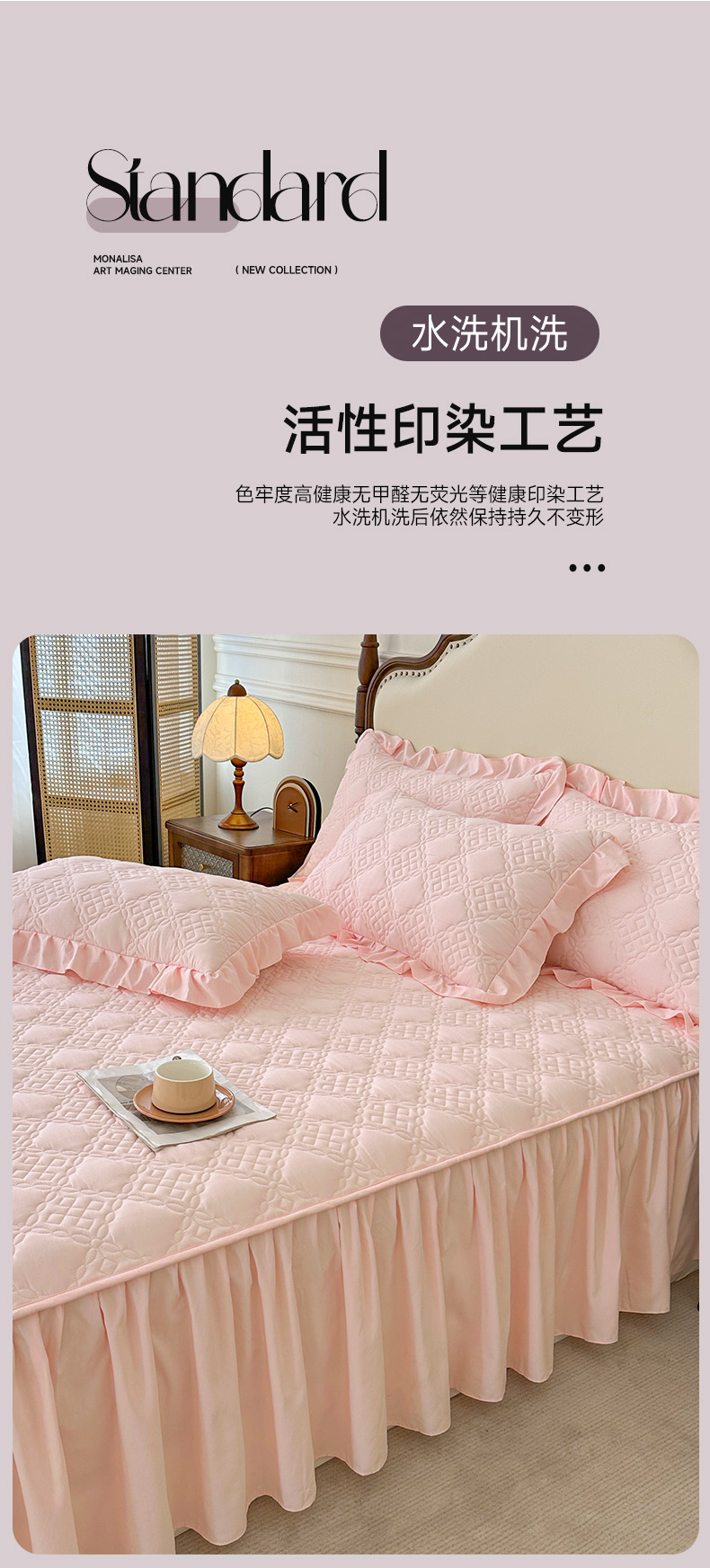 商品名称:鼎丰家纺 2025新款纯色夹棉床裙-格影 格影-粉