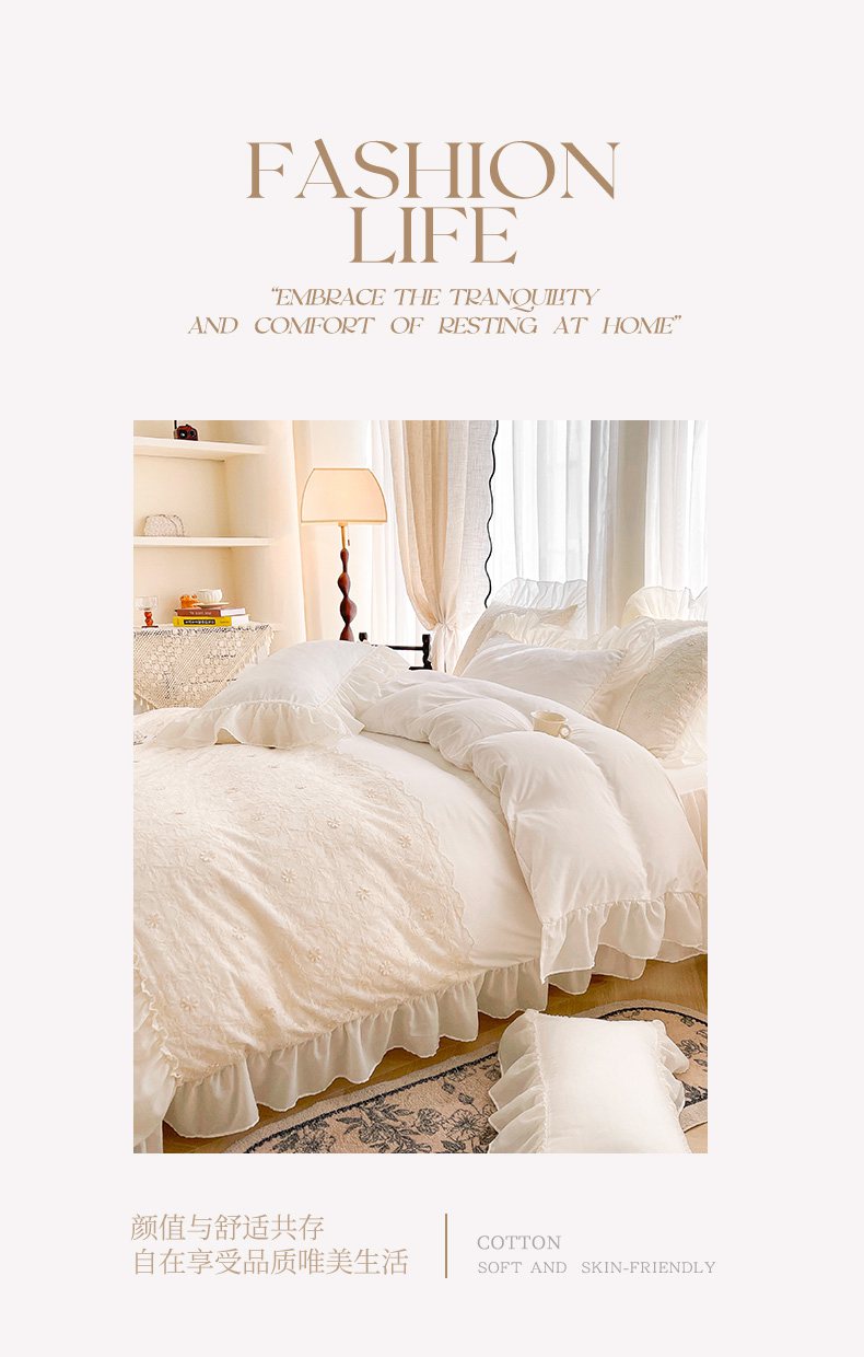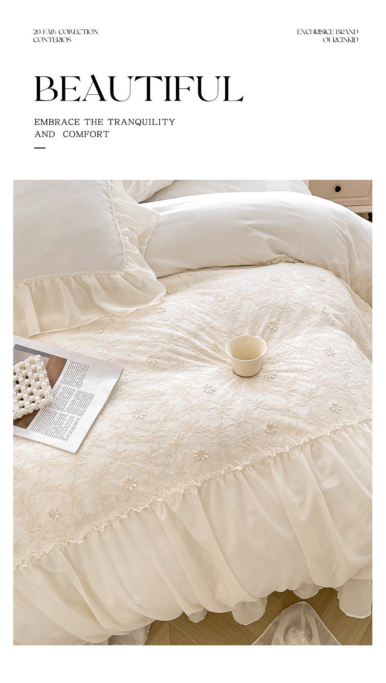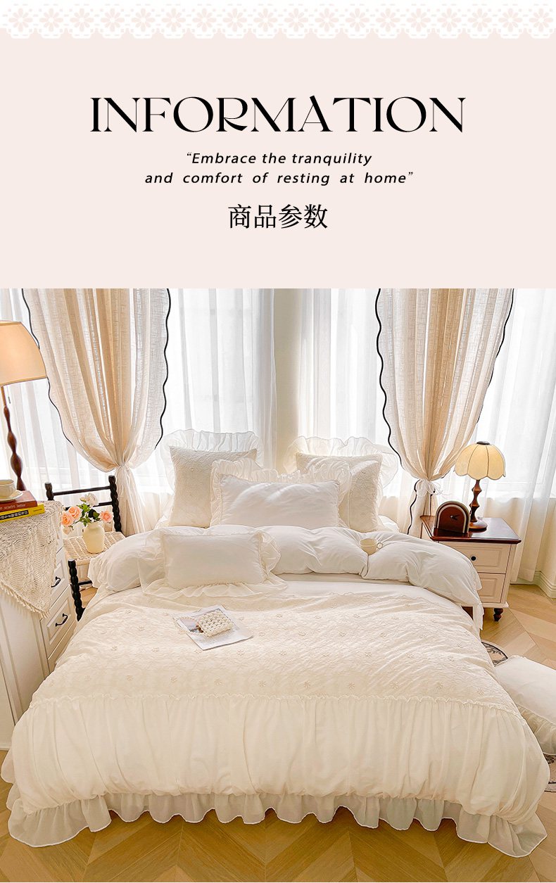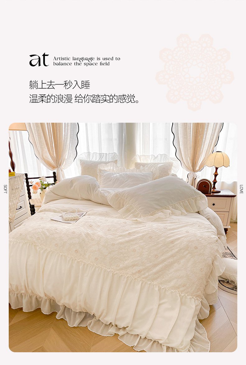 当前位置: 91家纺网 > 商品网购 > 床品套件 > 四件套 > 其它四件套 > 鼎丰家纺 2025新款立体蕾丝雪纺花边四件套-月光花园系列 月光花园-浅蓝