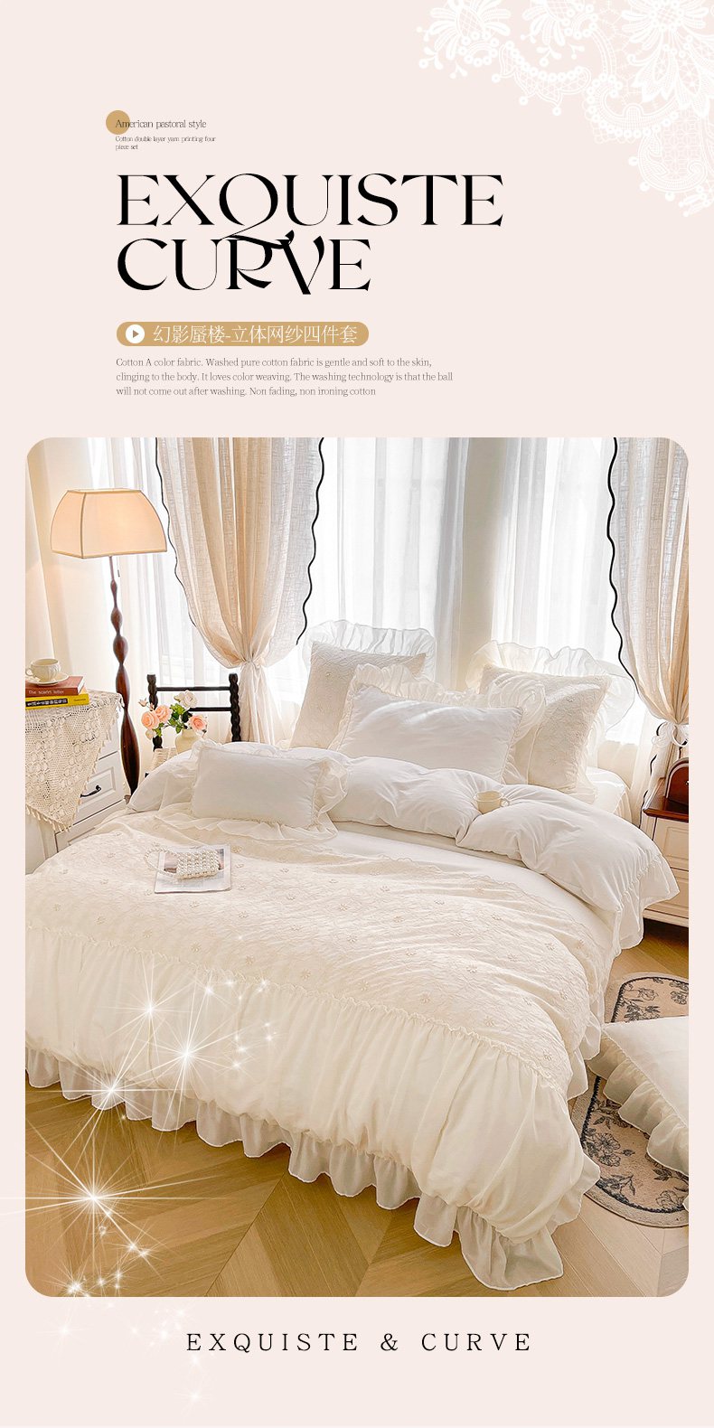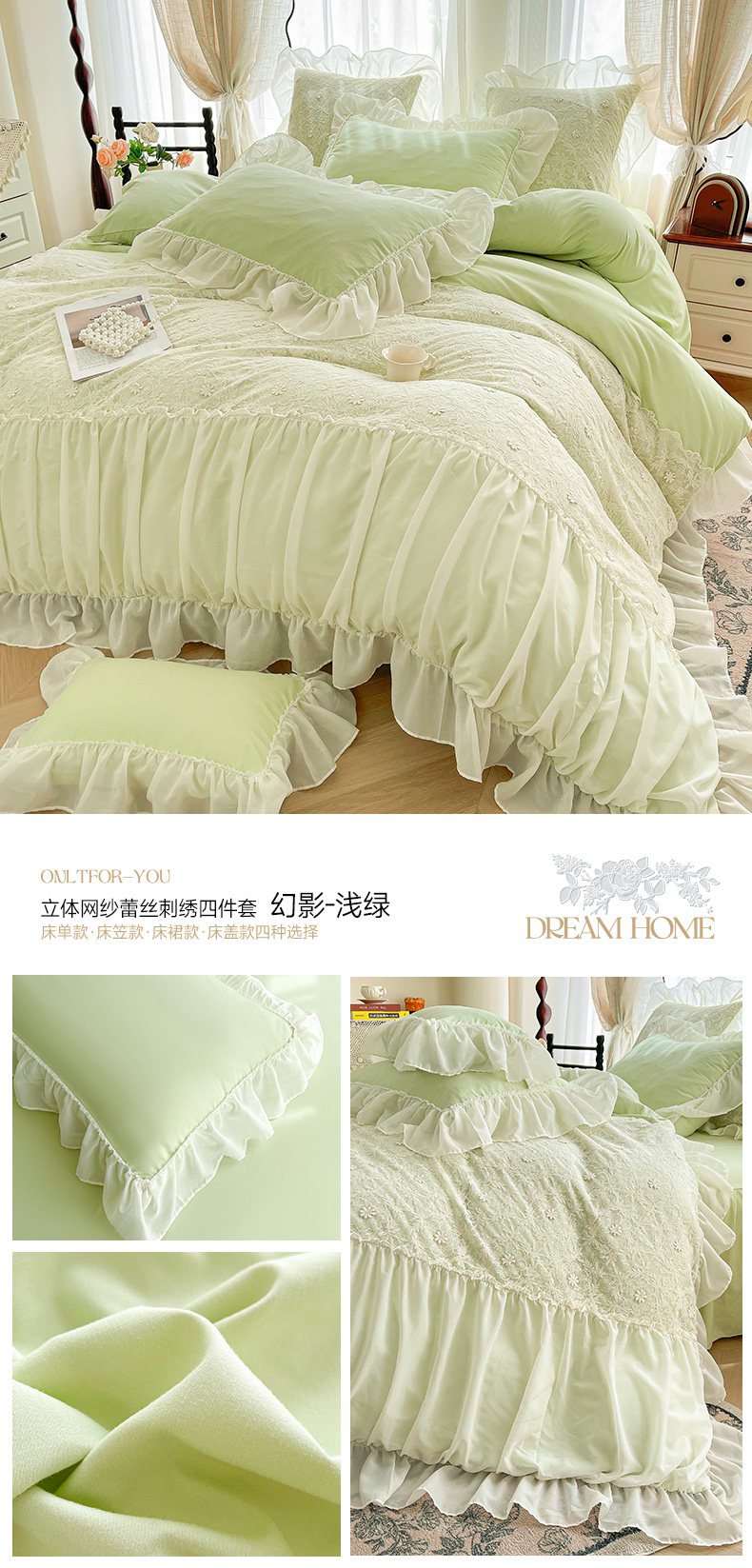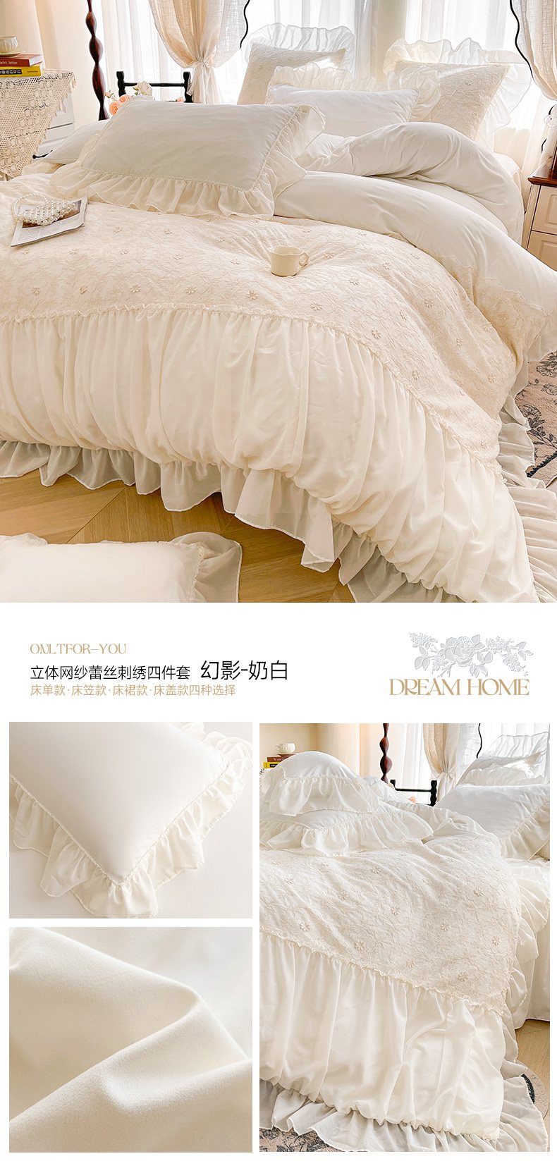 当前位置: 91家纺网 > 商品网购 > 床品套件 > 四件套 > 其它四件套 > 鼎丰家纺 2025新款立体蕾丝雪纺花边四件套-月光花园系列 月光花园-浅蓝
