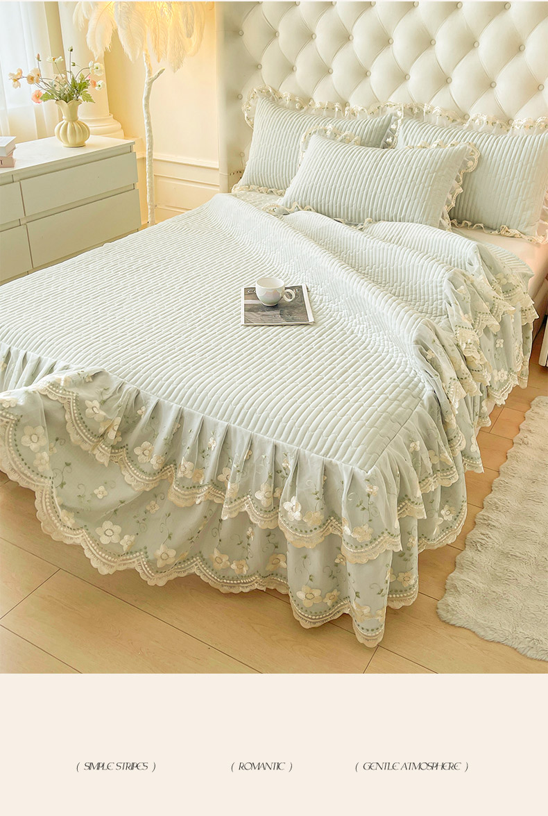 予梦家纺 2025新款夹棉床裙单床裙单品床裙单件床裙-晨曦 晨曦-嫩绿
